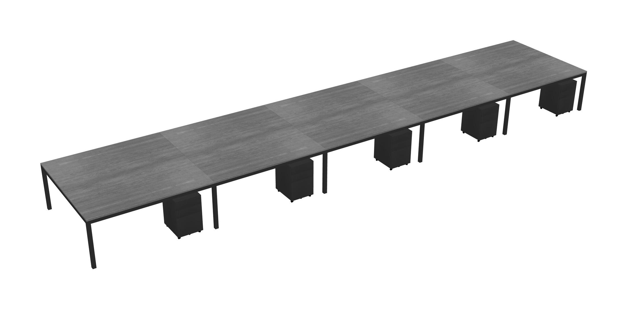Grey Shared Rectangular Office Desk With Metal Mobile Drawers For 10 Persons