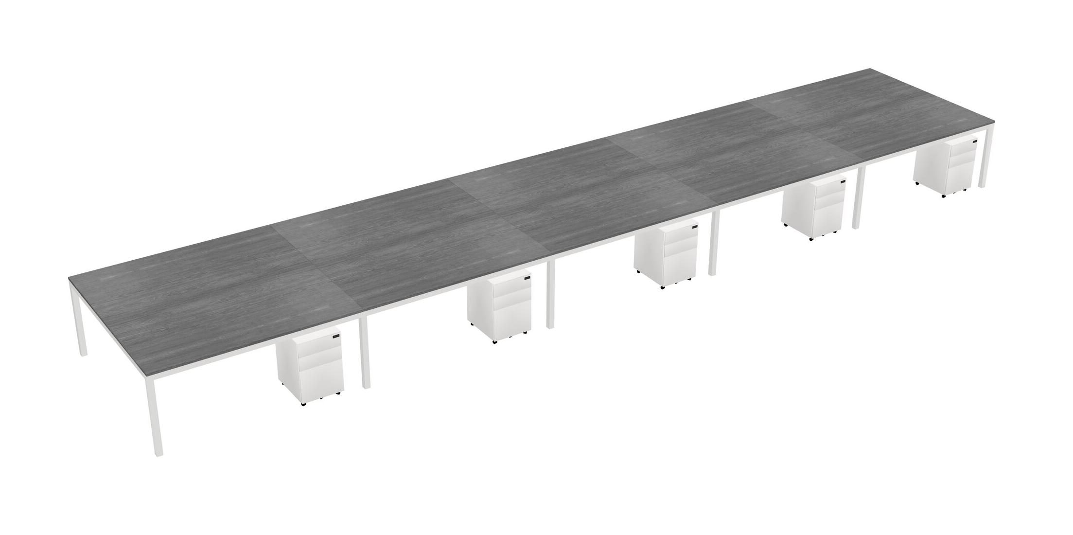 Grey Shared Rectangular Office Desk With Metal Mobile Drawers For 10 Persons