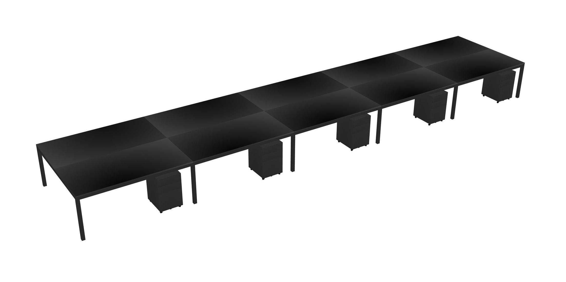 Black Shared Rectangular Office Desk With Metal Mobile Drawers For 10 Persons
