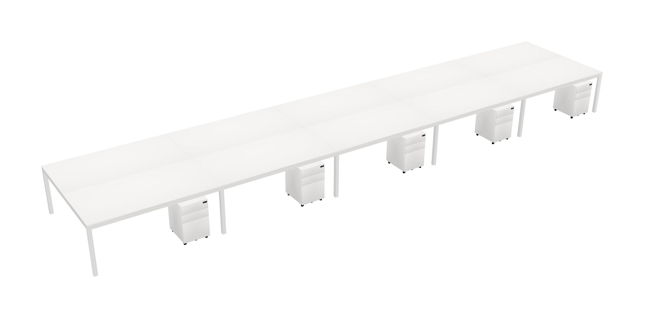White Shared Rectangular Office Desk With Metal Mobile Drawers For 10 Persons