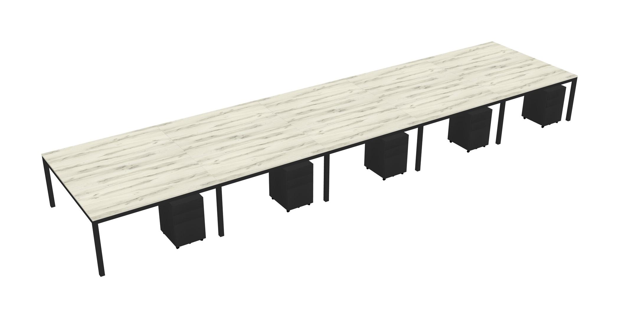 Heinne Holz Shared Rectangular Office Desk With Metal Mobile Drawers For 10 Persons