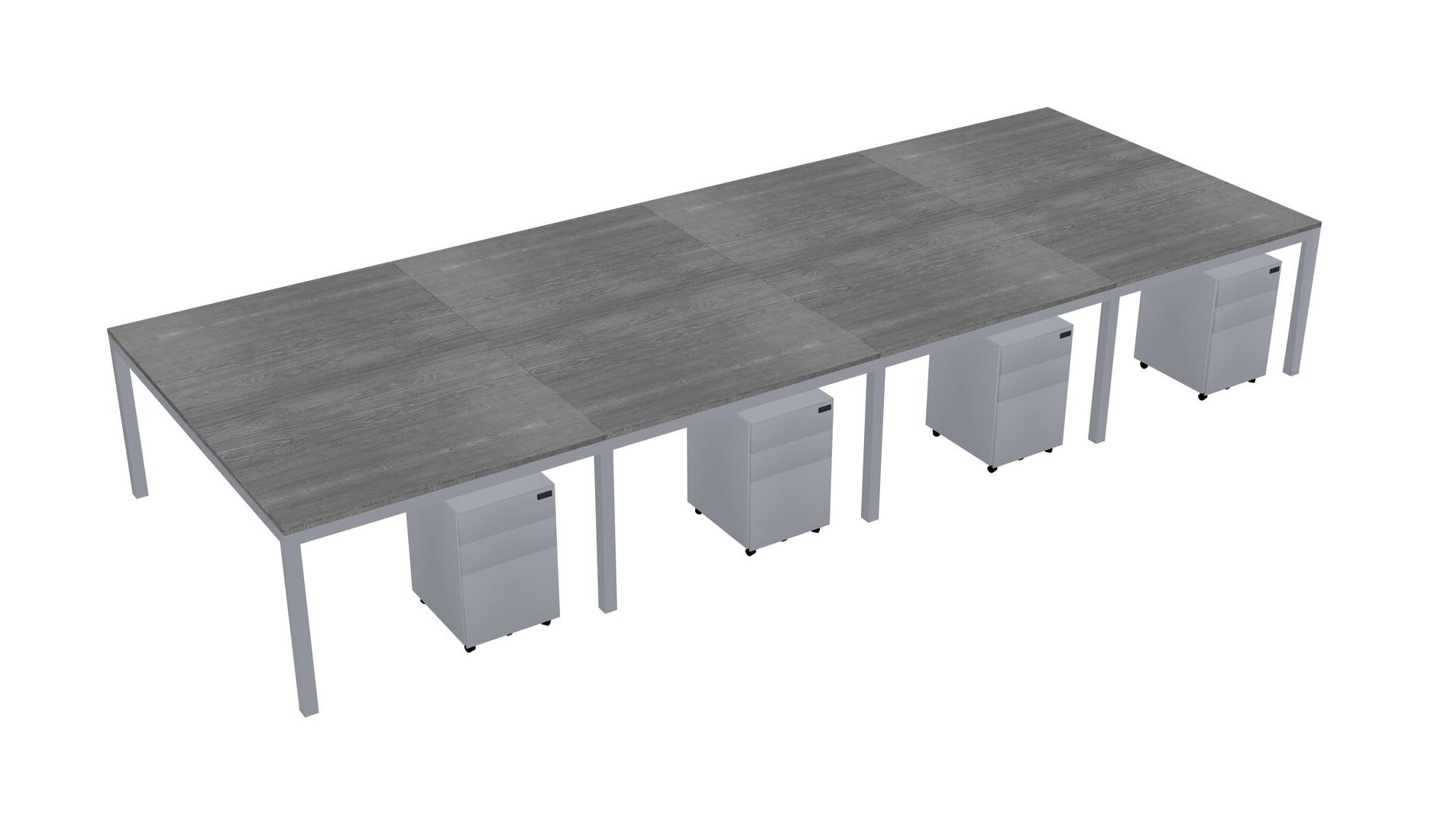 Grey Shared Rectangular Office Desk With Metal Mobile Drawers For 8 Persons
