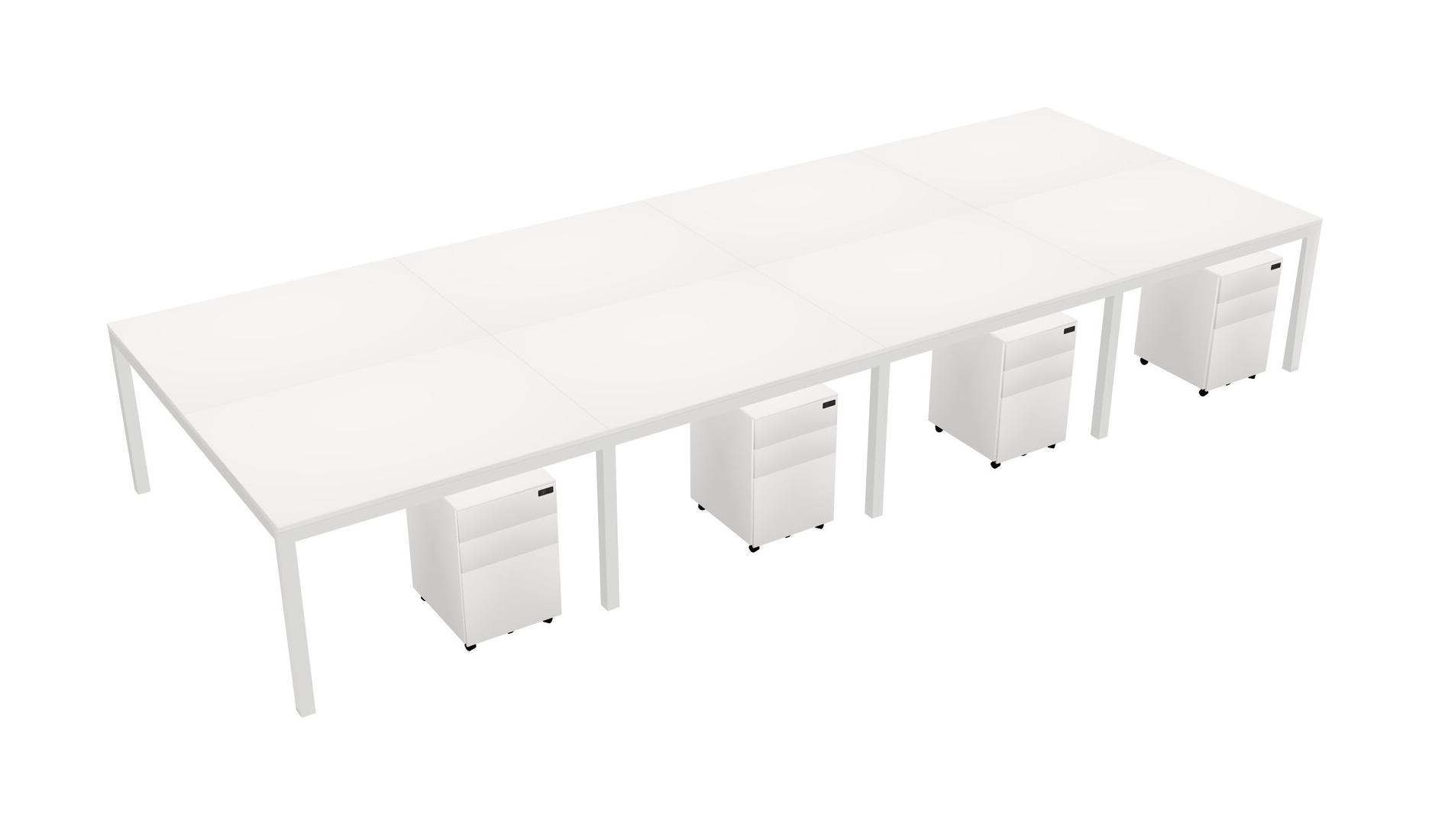 White Shared Rectangular Office Desk With Metal Mobile Drawers For 8 Persons