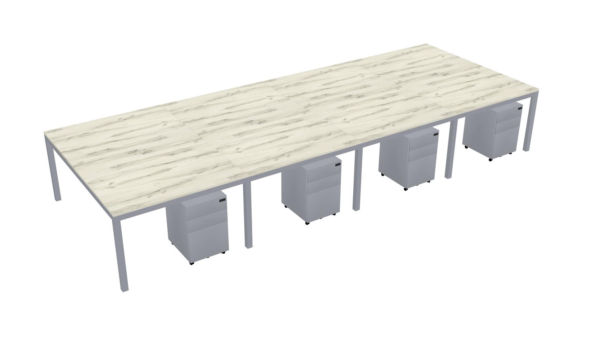 Heinne Holz Shared Rectangular Office Desk With Metal Mobile Drawers For 8 Persons