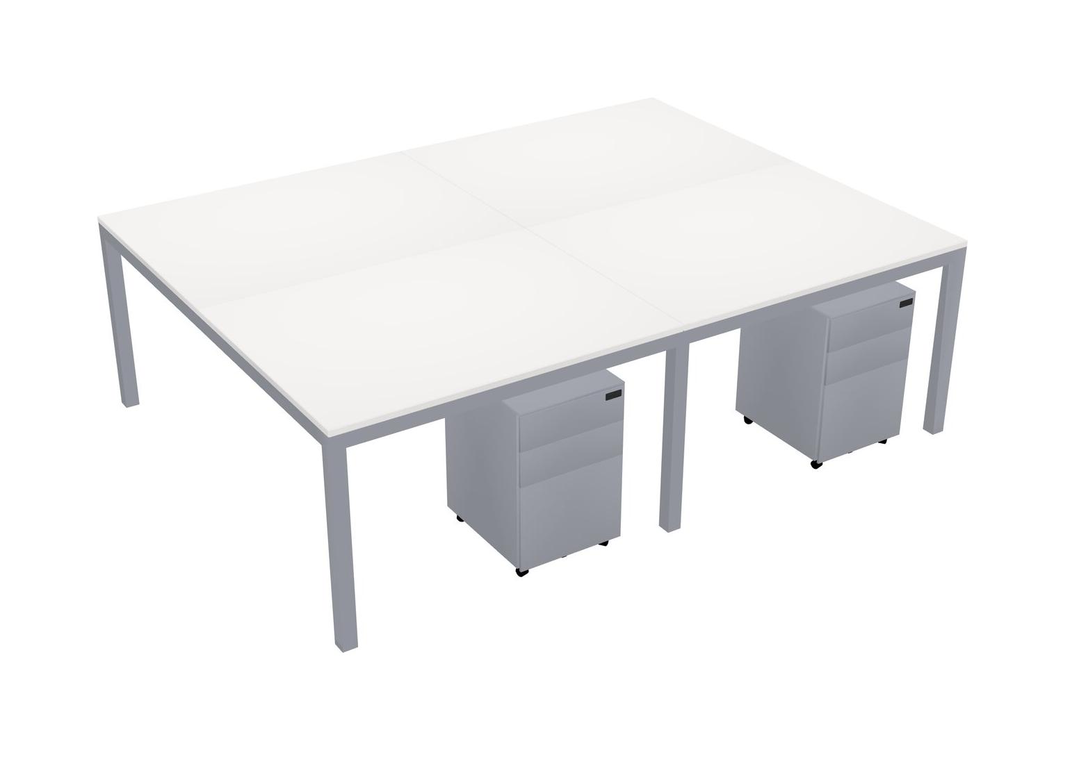 White Shared Rectangular Office Desk With Metal Mobile Drawers For 4 Persons