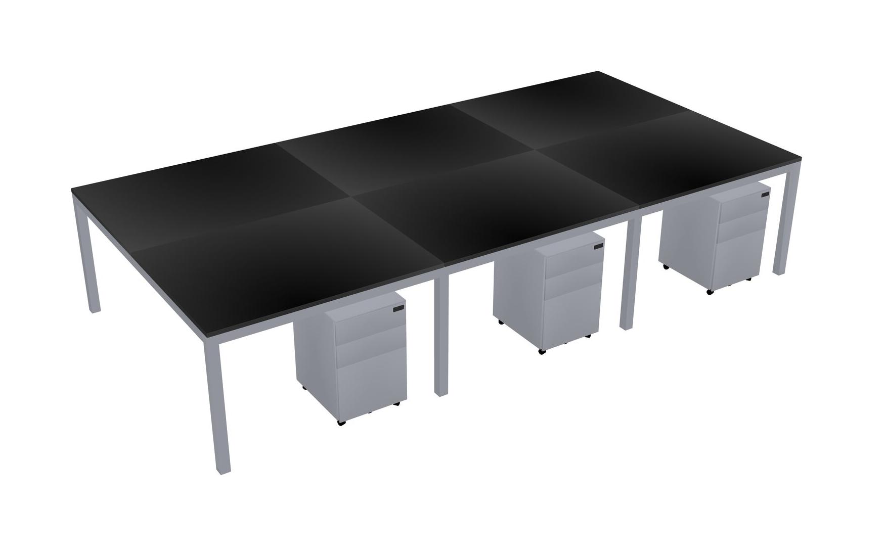 Black Shared Rectangular Office Desk With Metal Mobile Drawers For 6 Persons