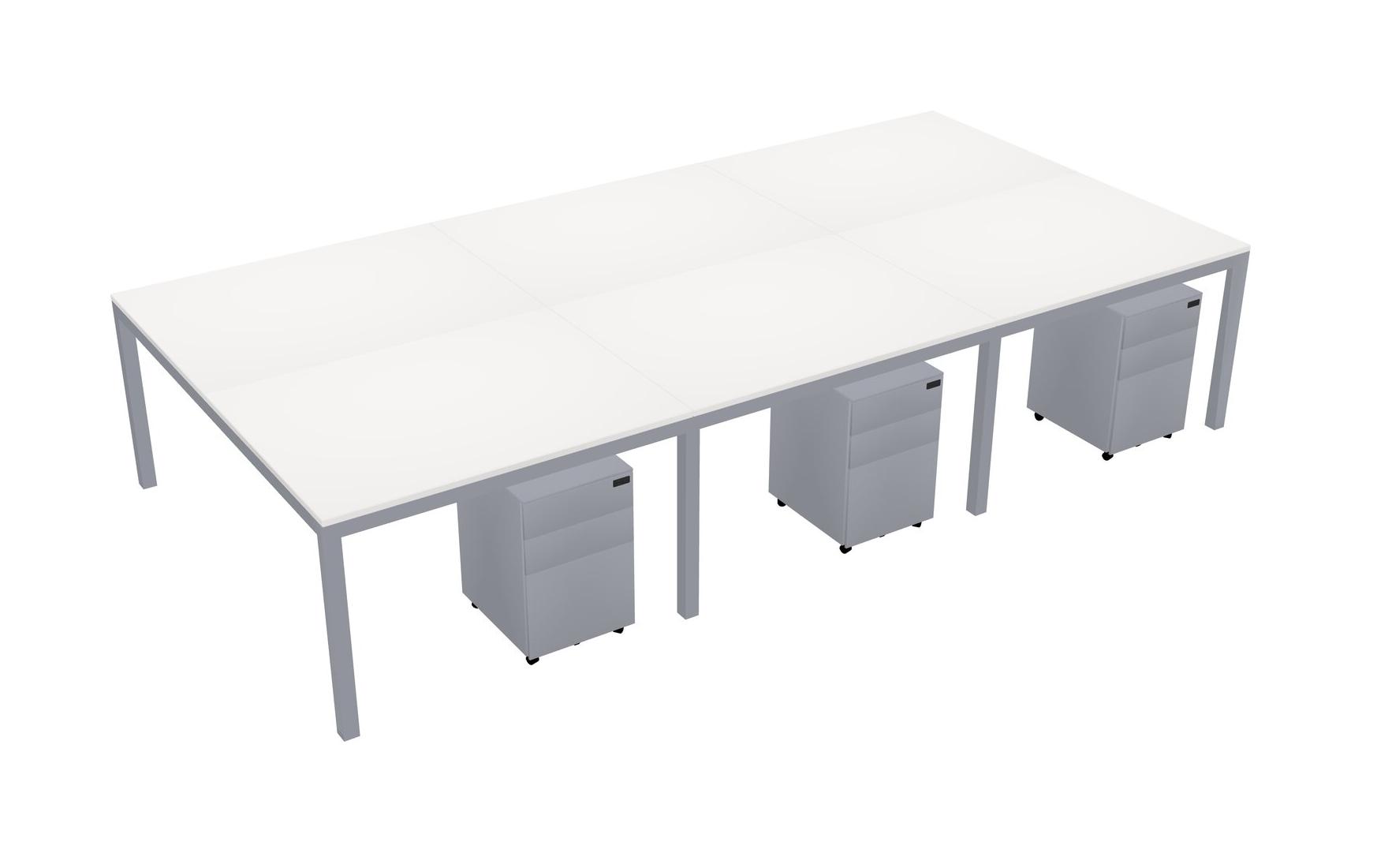 White Shared Rectangular Office Desk With Metal Mobile Drawers For 6 Persons