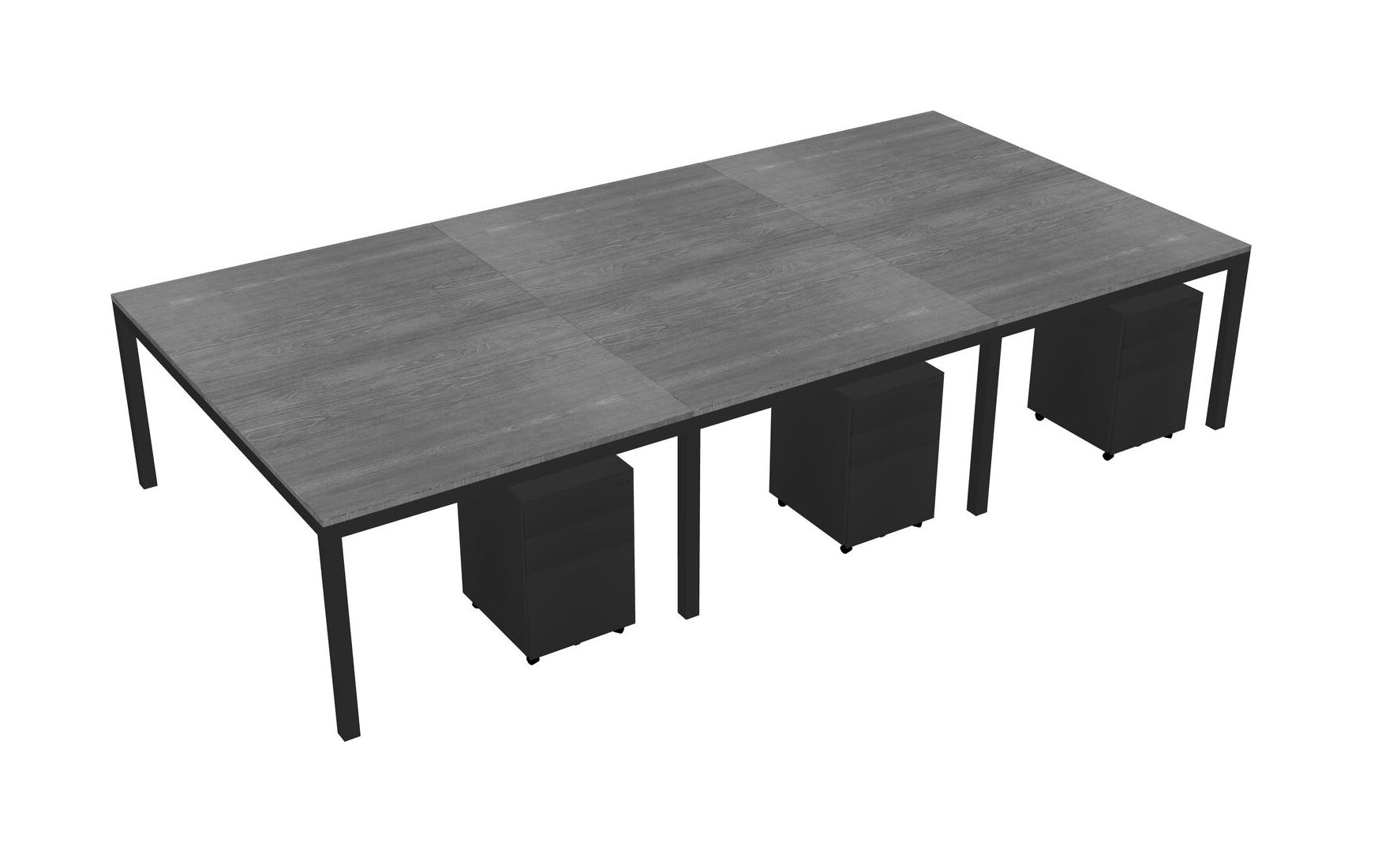 Grey Shared Rectangular Office Desk With Metal Mobile Drawers For 6 Persons