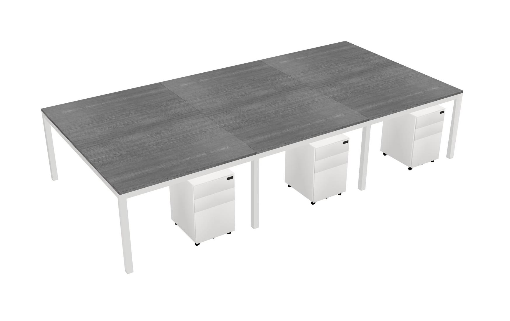 Grey Shared Rectangular Office Desk With Metal Mobile Drawers For 6 Persons