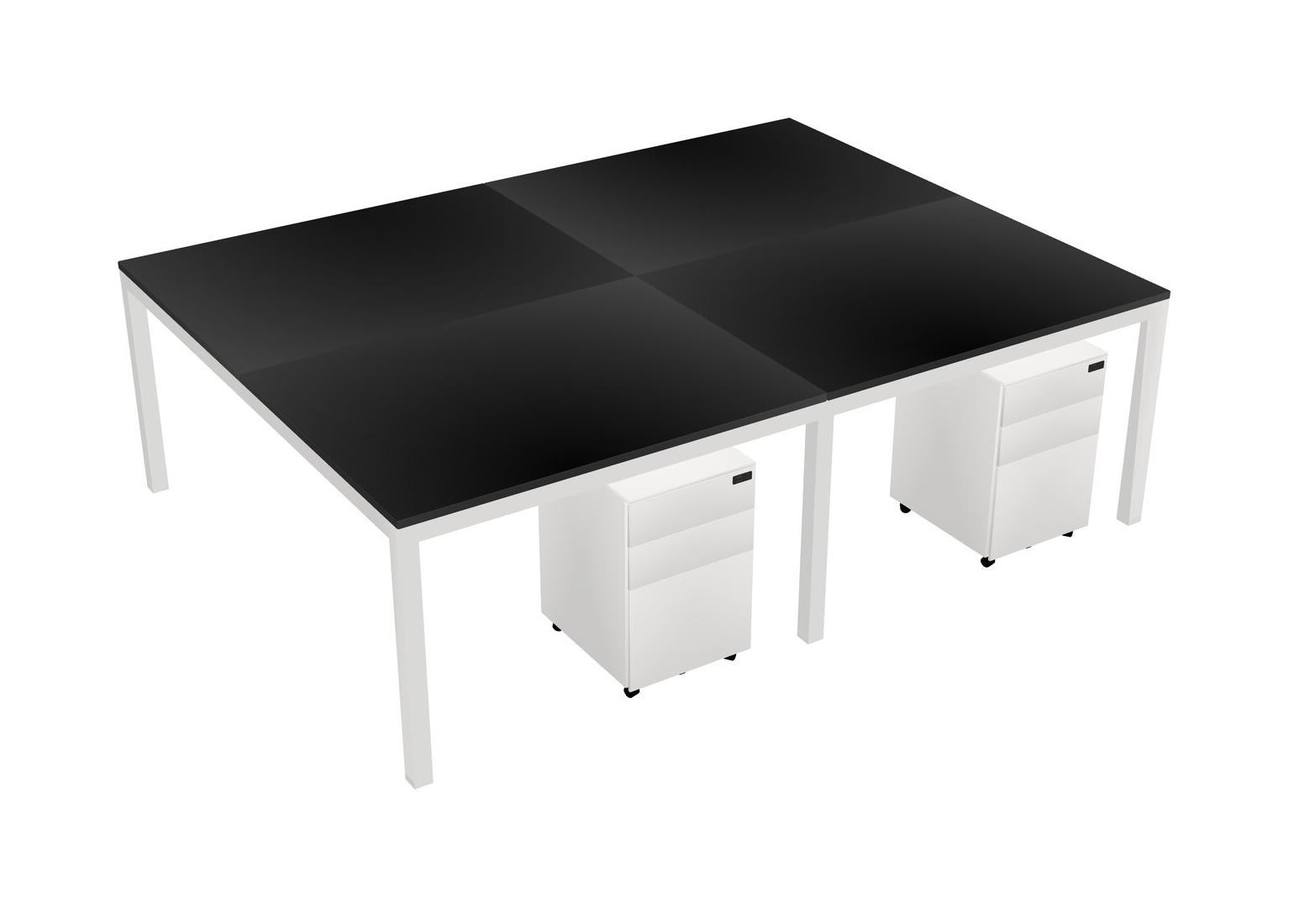 Black Shared Rectangular Office Desk With Metal Mobile Drawers For 4 Persons