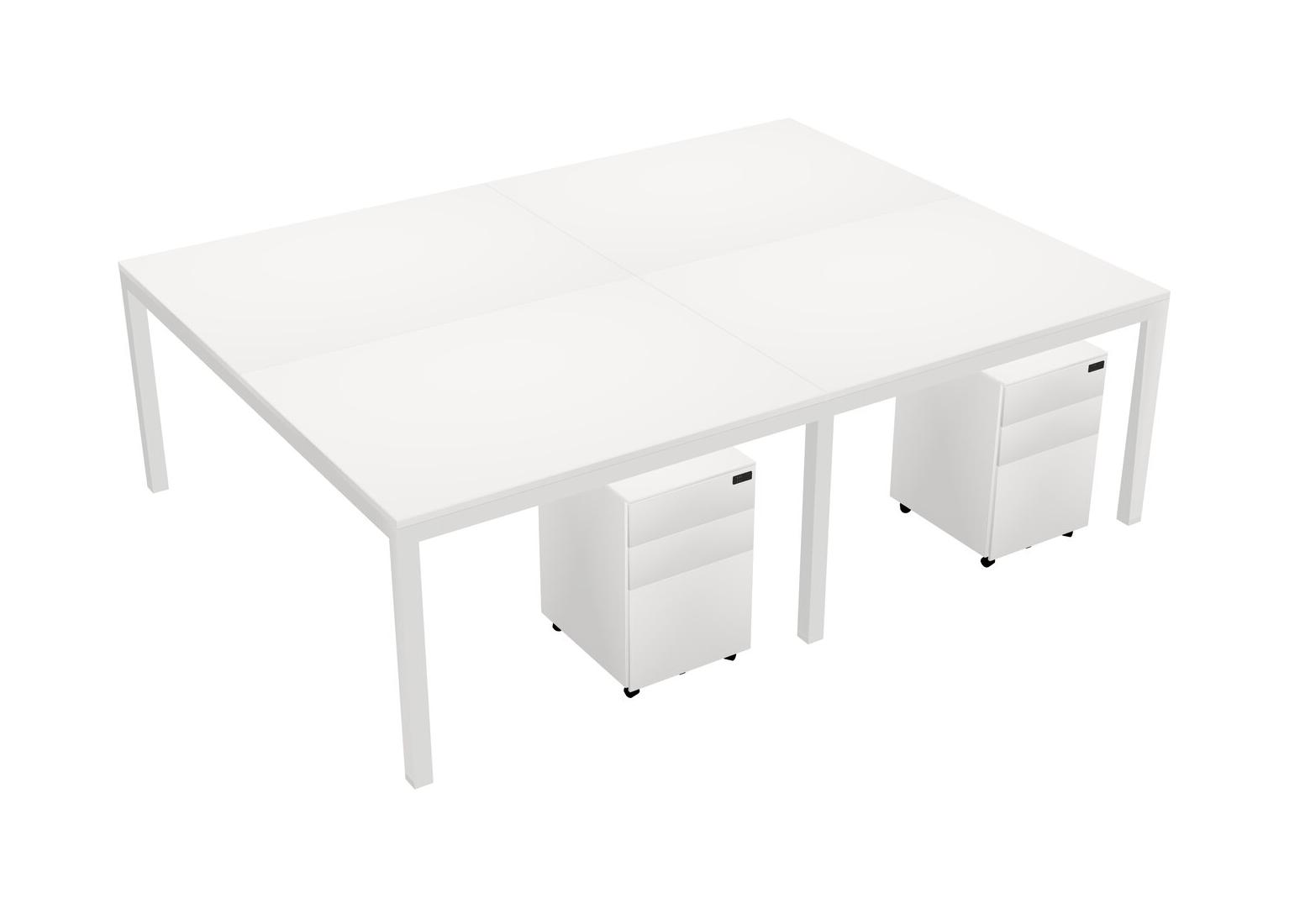 White Shared Rectangular Office Desk With Metal Mobile Drawers For 4 Persons