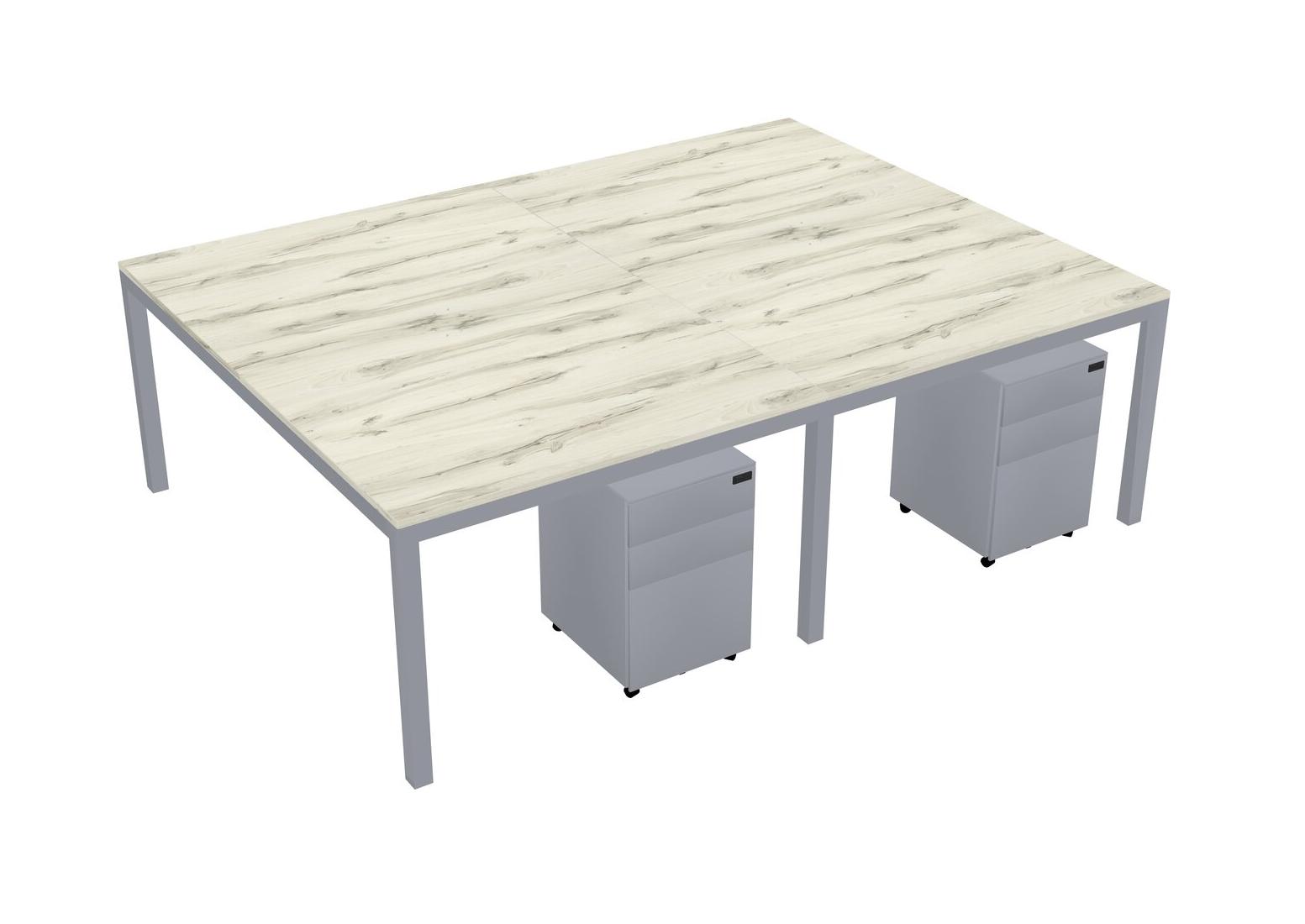 Heinne Holz Shared Rectangular Office Desk With Metal Mobile Drawers For 4 Persons
