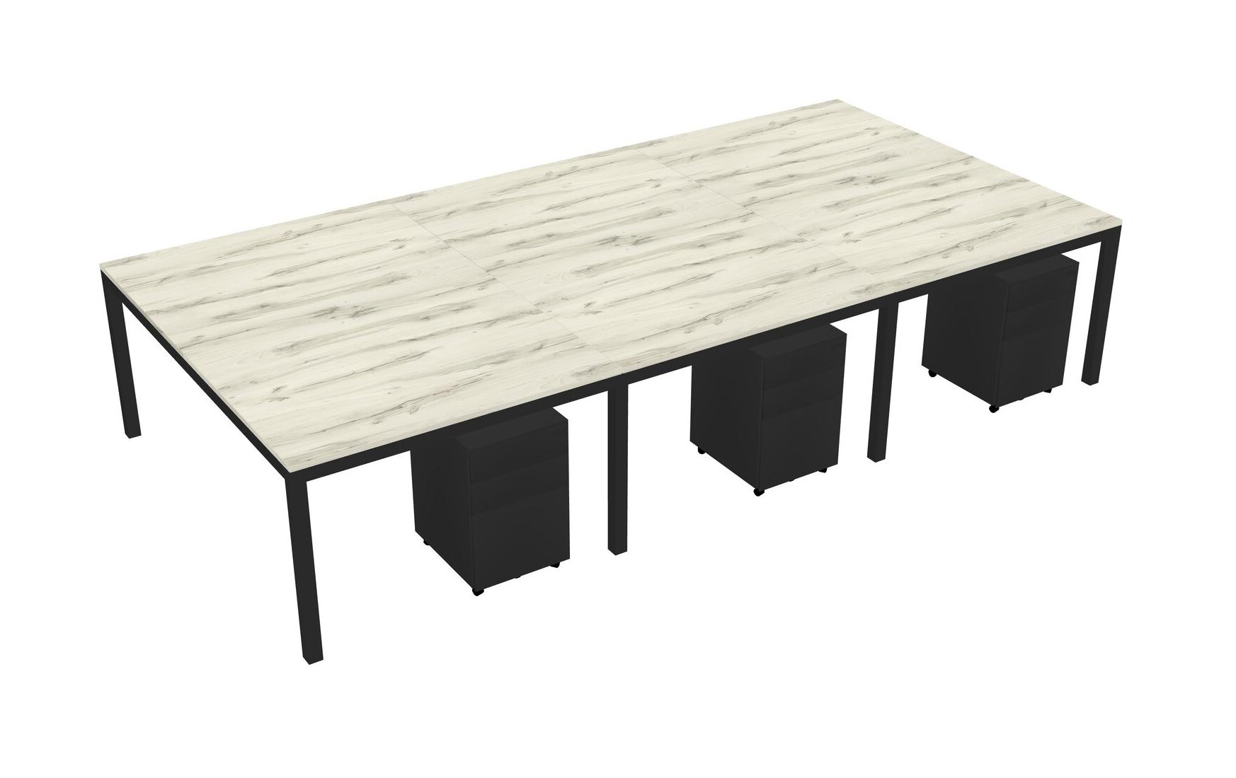 Heinne Holz Shared Rectangular Office Desk With Metal Mobile Drawers For 6 Persons