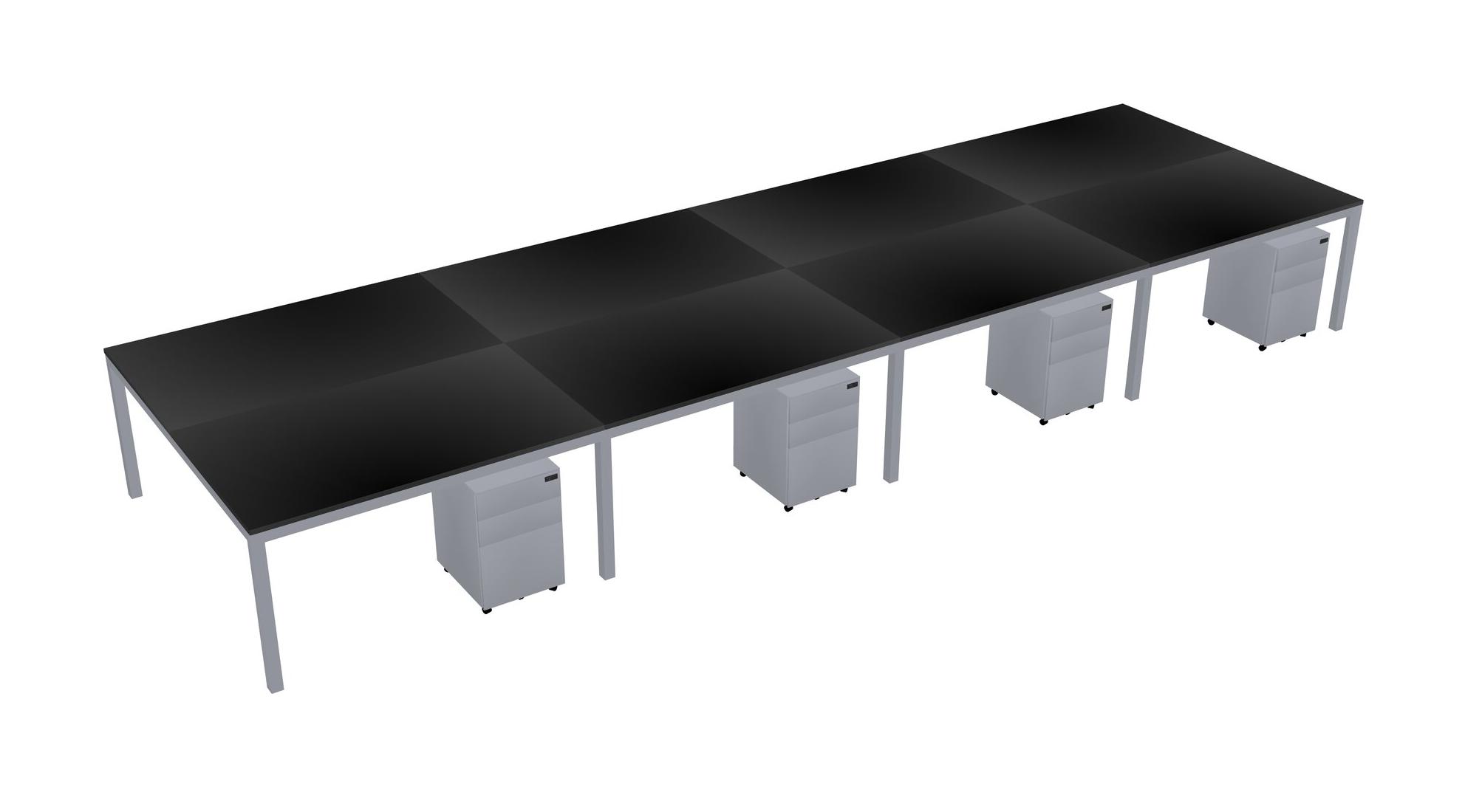 Black Shared Rectangular Office Desk With Metal Mobile Drawers For 8 Persons