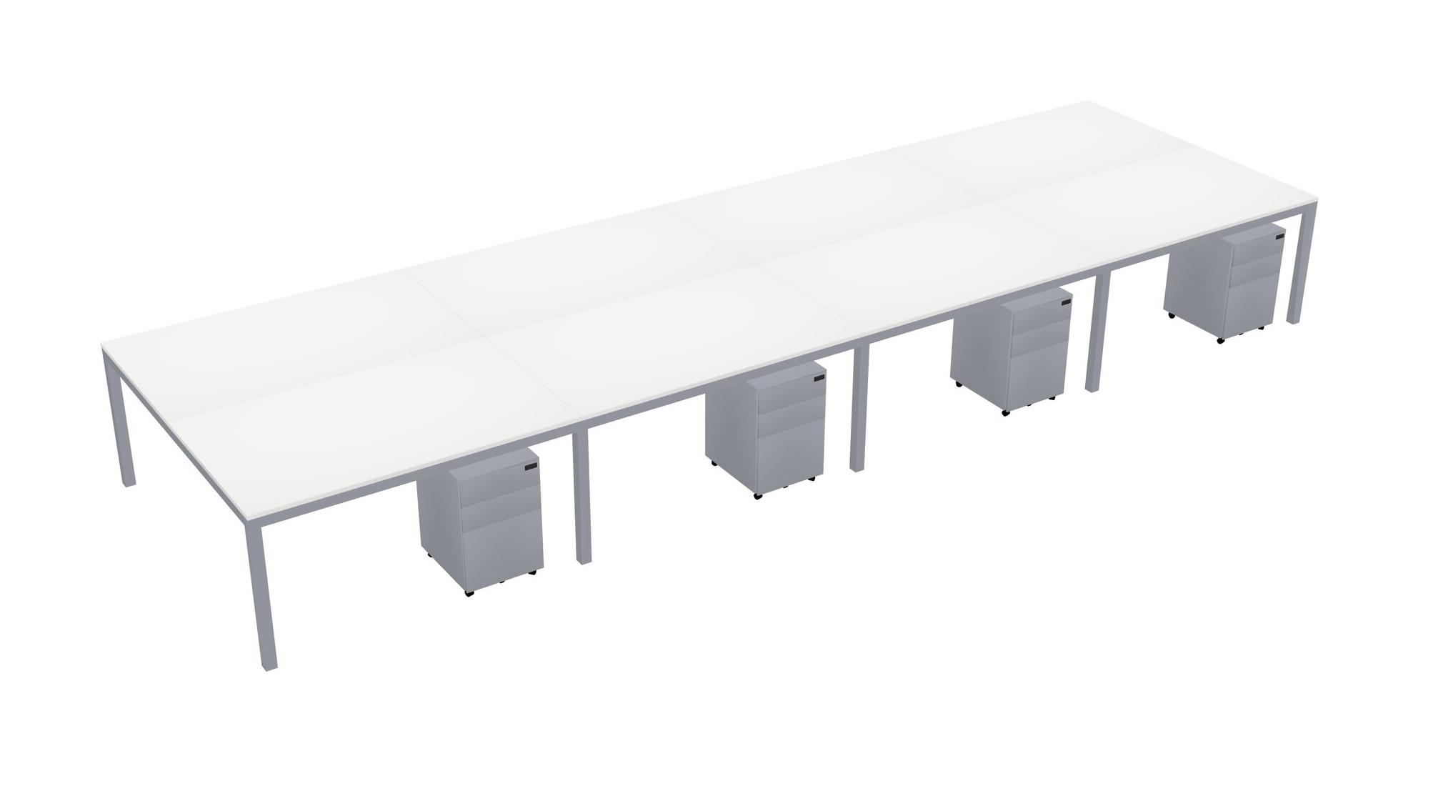 White Shared Rectangular Office Desk With Metal Mobile Drawers For 8 Persons