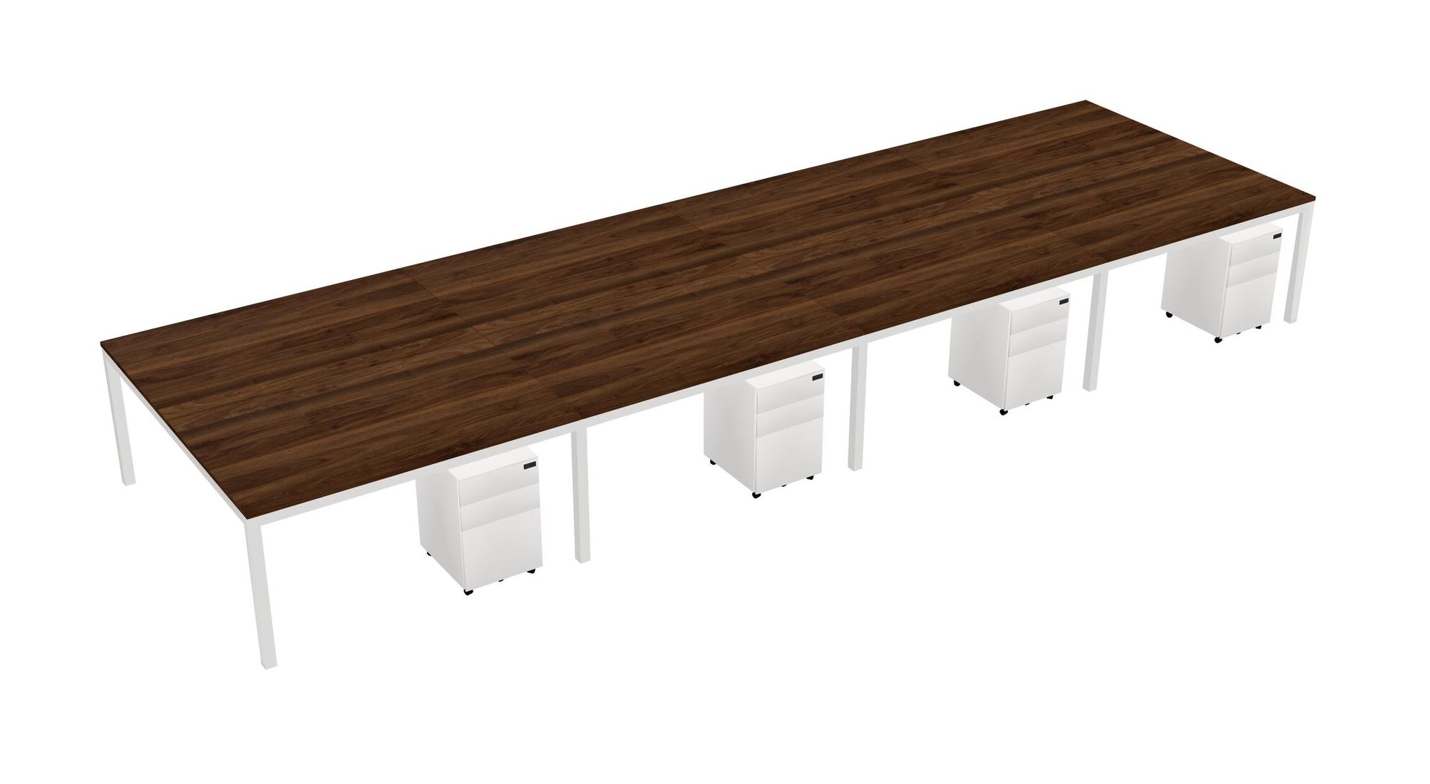 Columbia Walnut Shared Rectangular Office Desk With Metal Mobile Drawers For 8 Persons