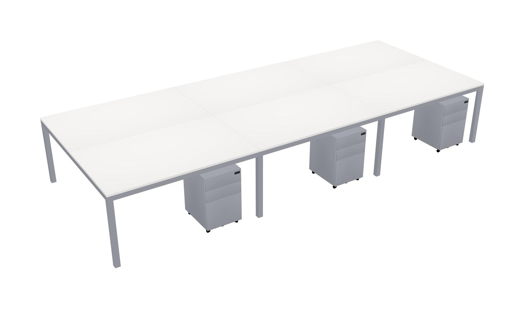 White Shared Rectangular Office Desk With Metal Mobile Drawers For 6 Persons