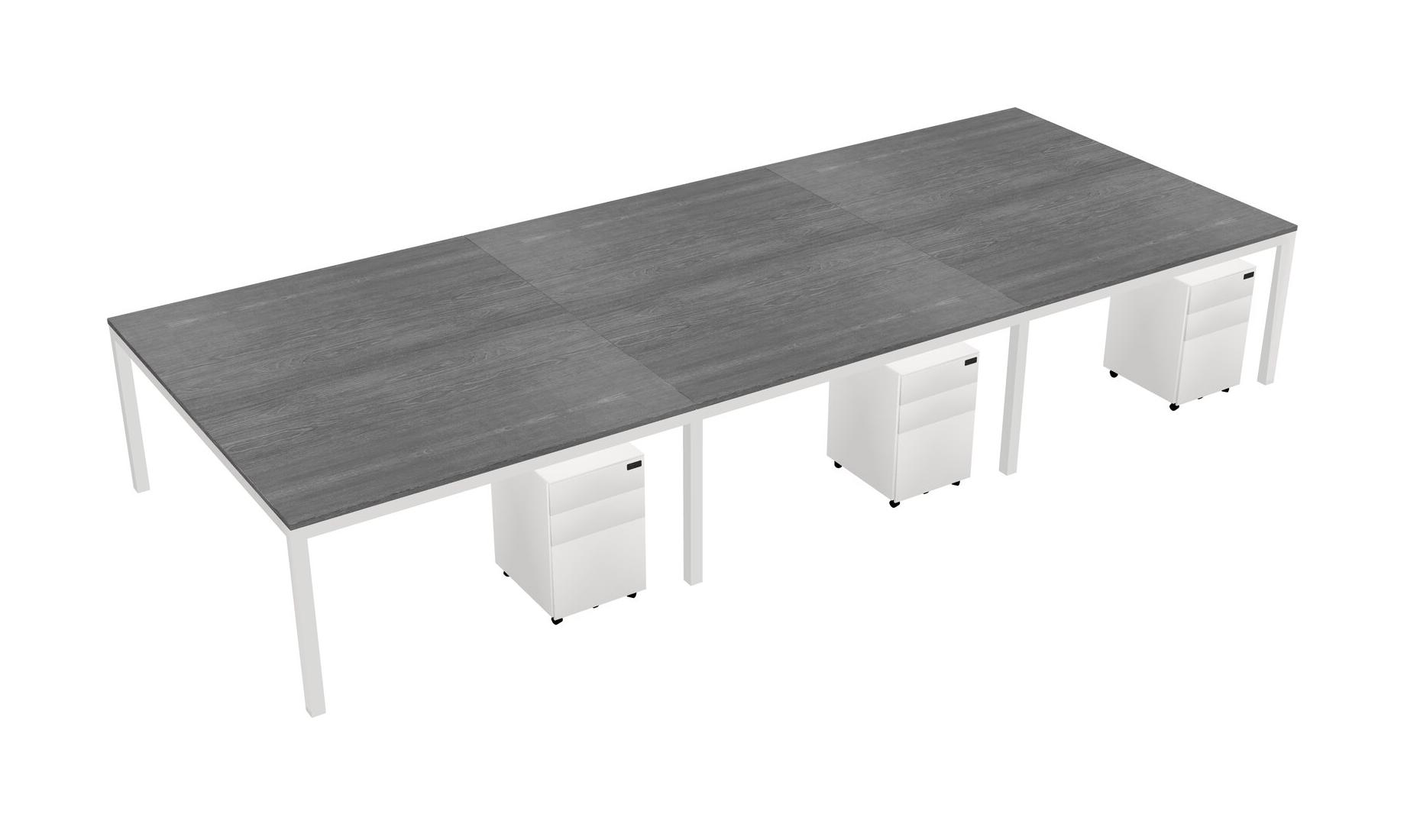 Grey Shared Rectangular Office Desk With Metal Mobile Drawers For 6 Persons