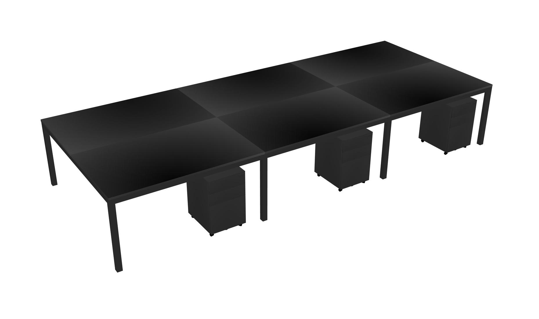 Black Shared Rectangular Office Desk With Metal Mobile Drawers For 6 Persons