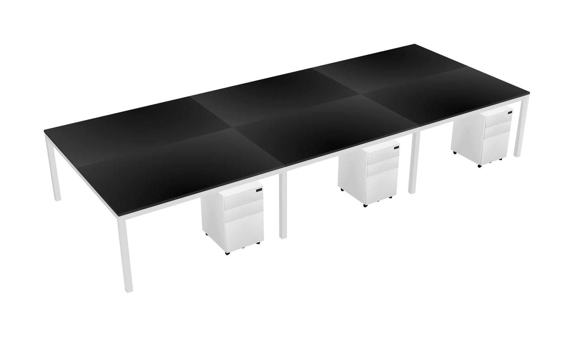 Black Shared Rectangular Office Desk With Metal Mobile Drawers For 6 Persons