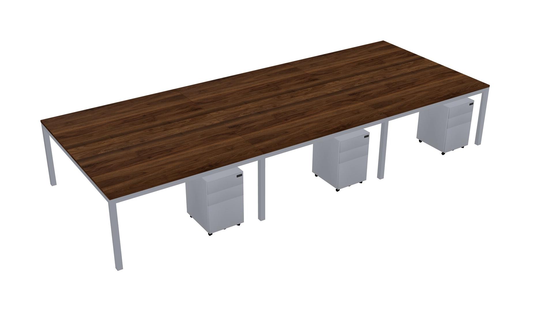 Columbia Walnut Shared Rectangular Office Desk With Metal Mobile Drawers For 6 Persons