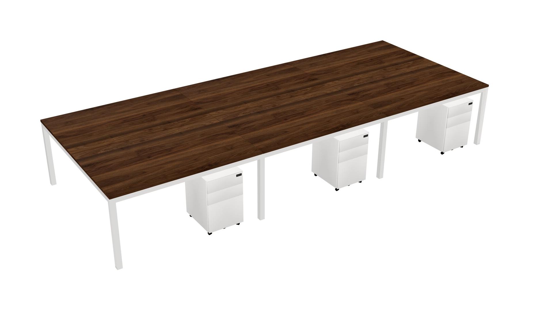 Columbia Walnut Shared Rectangular Office Desk With Metal Mobile Drawers For 6 Persons