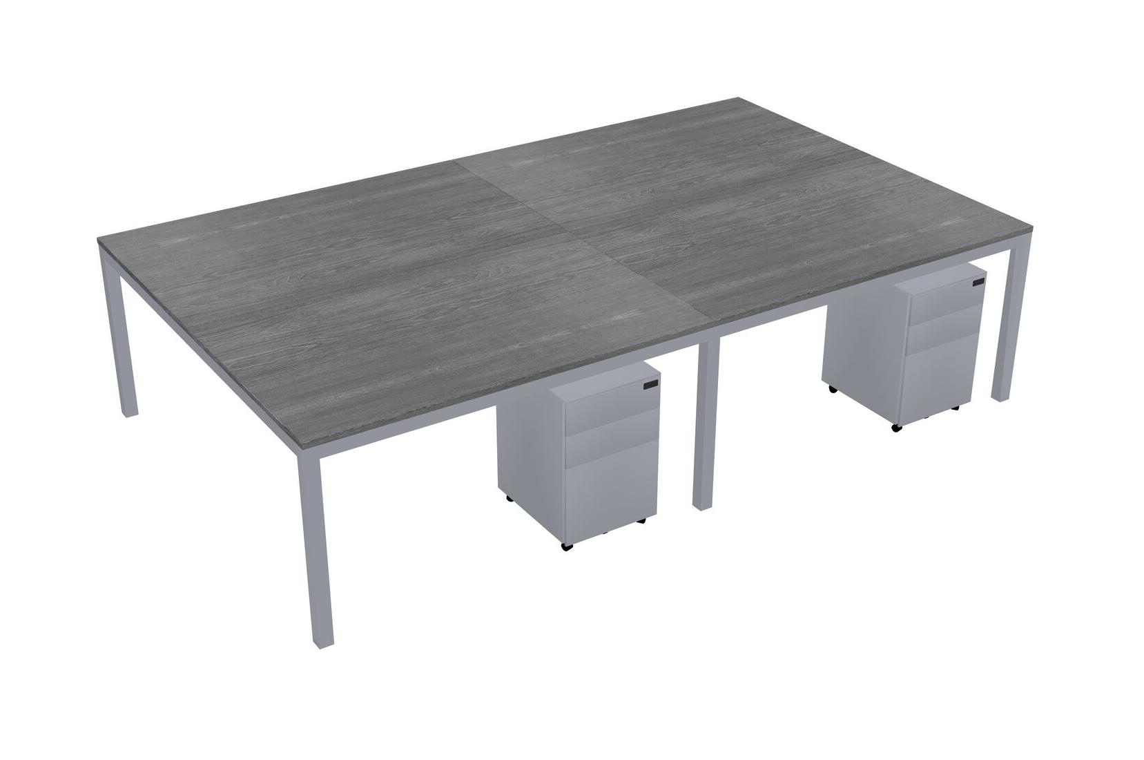 Grey Shared Rectangular Office Desk With Metal Mobile Drawers For 4 Persons