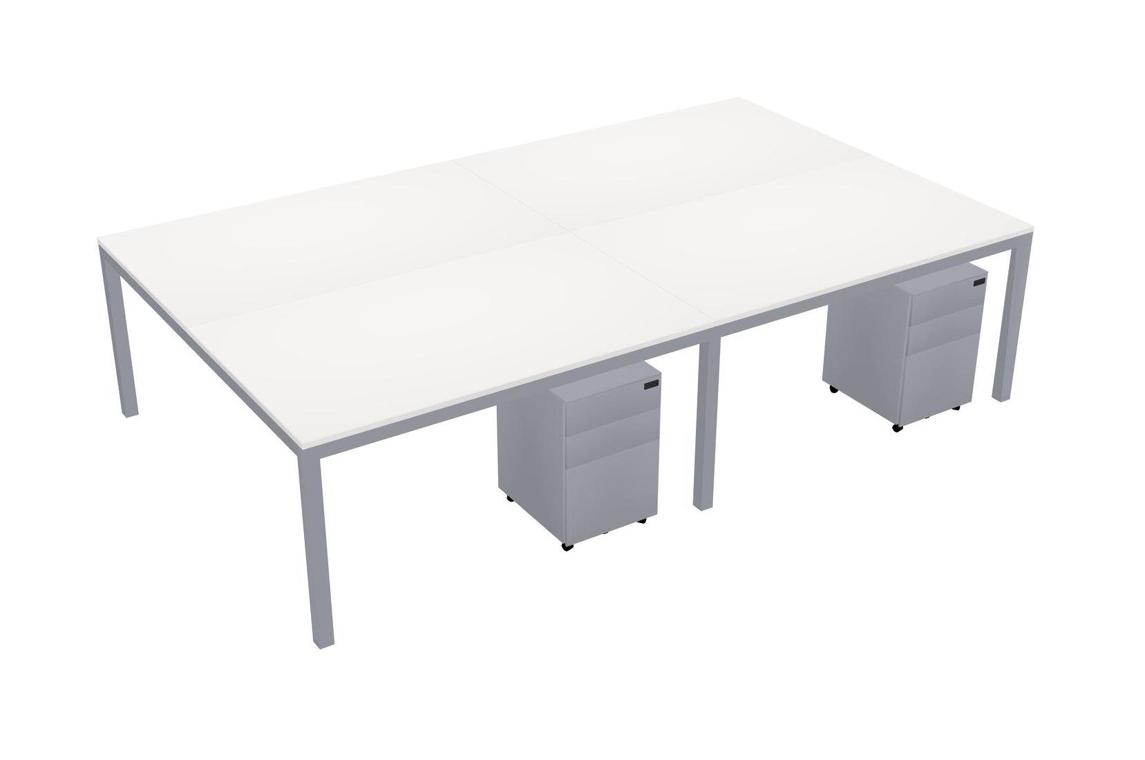 White Shared Rectangular Office Desk With Metal Mobile Drawers For 4 Persons