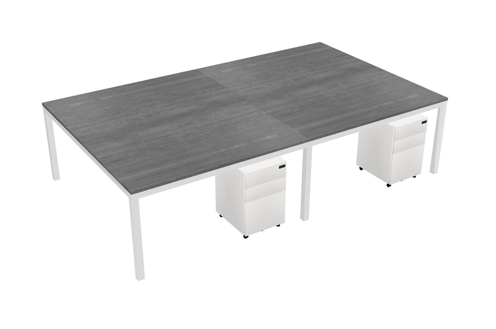 Grey Shared Rectangular Office Desk With Metal Mobile Drawers For 4 Persons