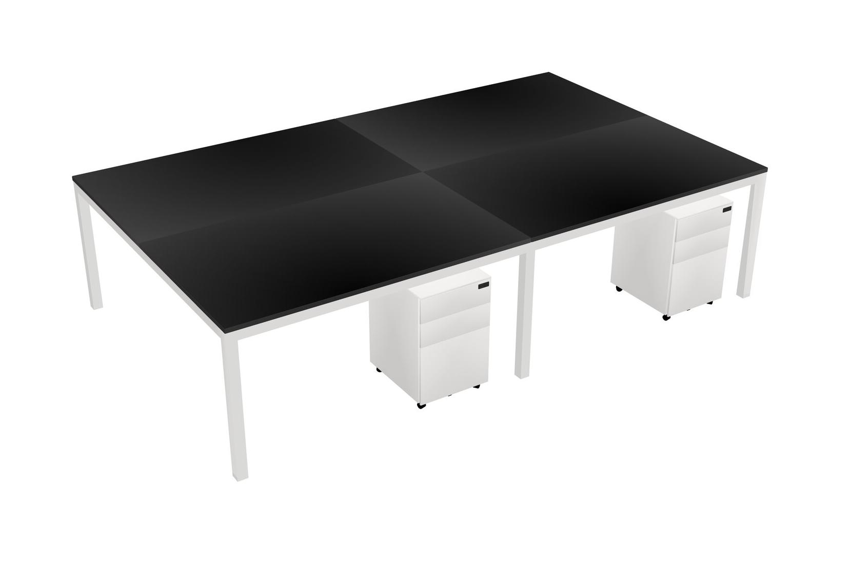 Black Shared Rectangular Office Desk With Metal Mobile Drawers For 4 Persons
