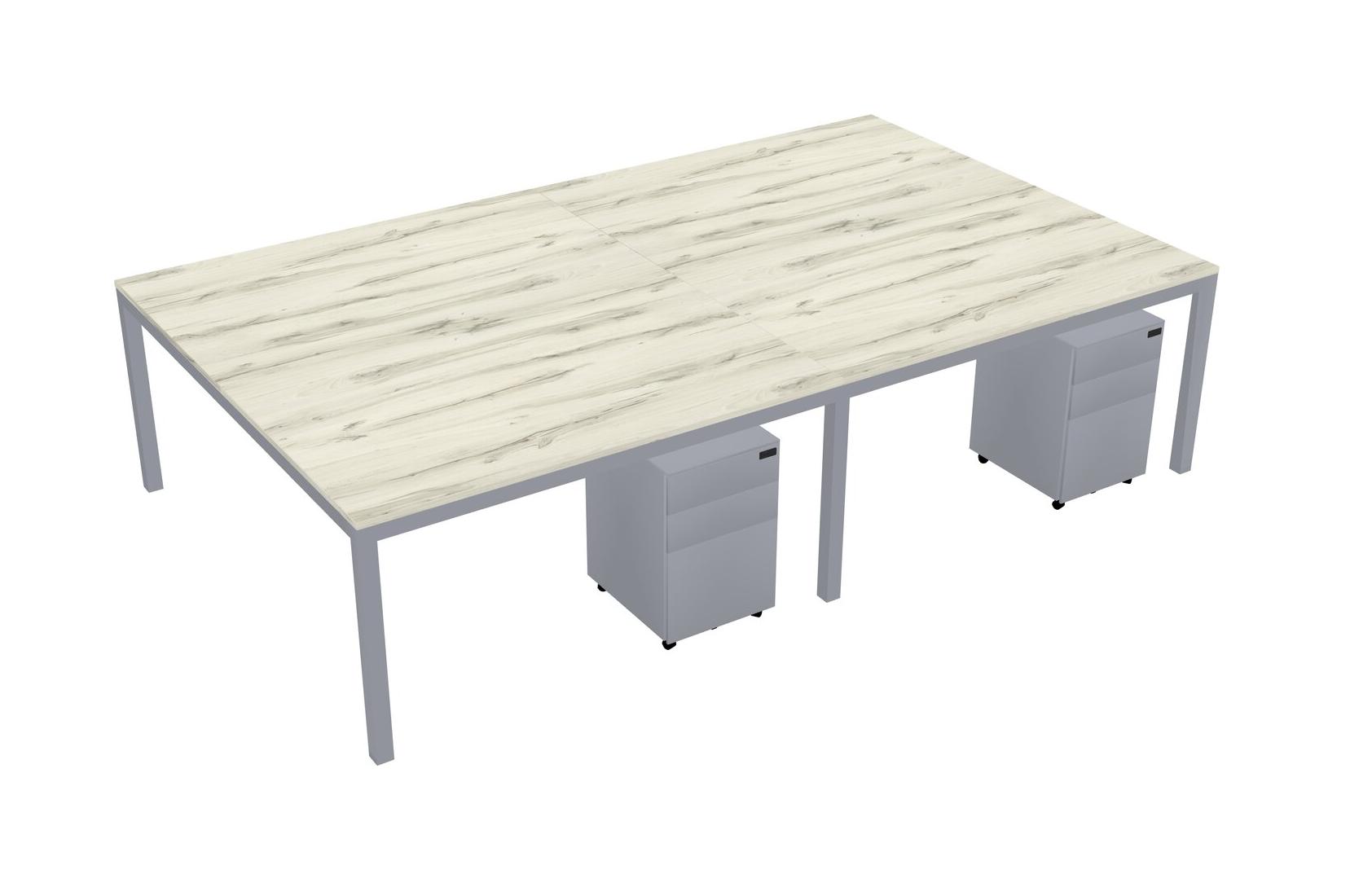 Heinne Holz Shared Rectangular Office Desk With Metal Mobile Drawers For 4 Persons