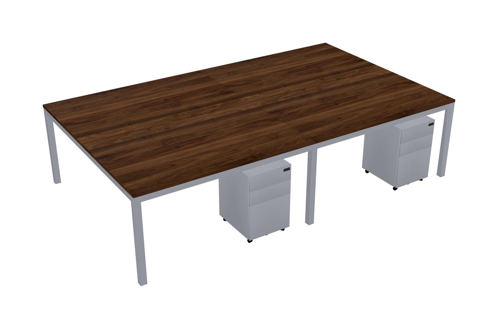 Columbia Walnut Shared Rectangular Office Desk With Metal Mobile Drawers For 4 Persons