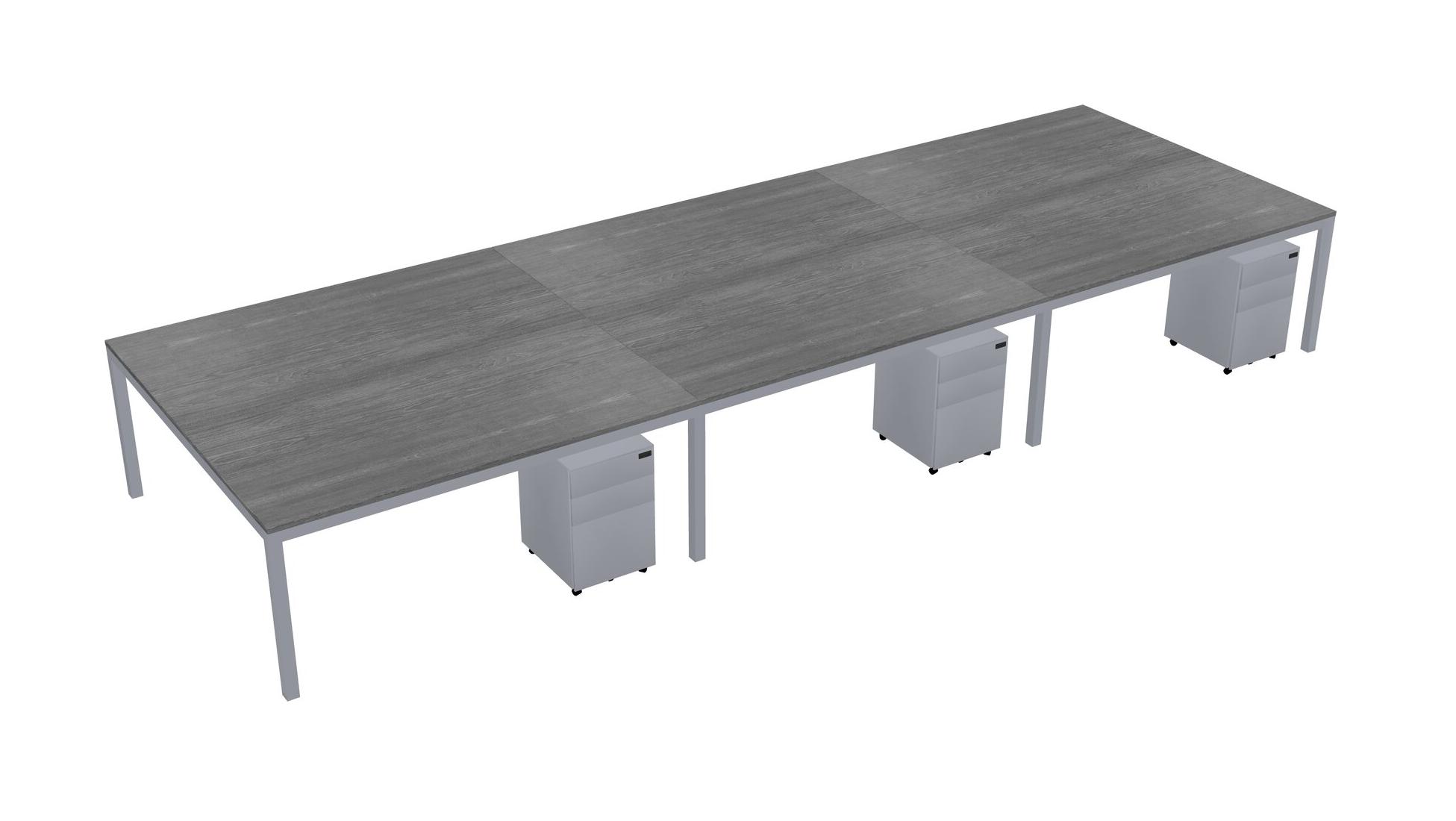 Grey Shared Rectangular Office Desk With Metal Mobile Drawers For 6 Persons
