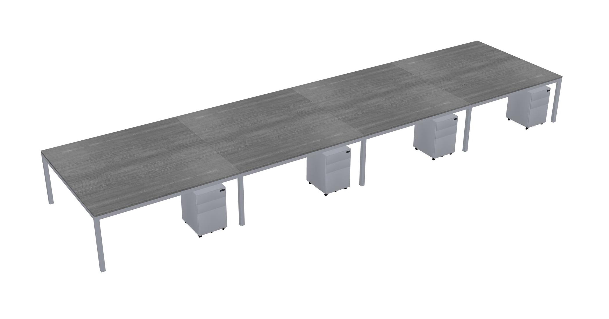 Grey Shared Rectangular Office Desk With Metal Mobile Drawers For 8 Persons