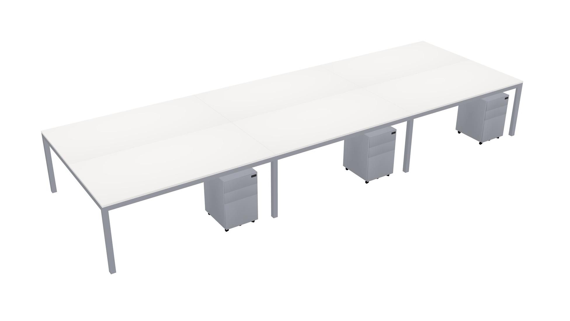 White Shared Rectangular Office Desk With Metal Mobile Drawers For 6 Persons