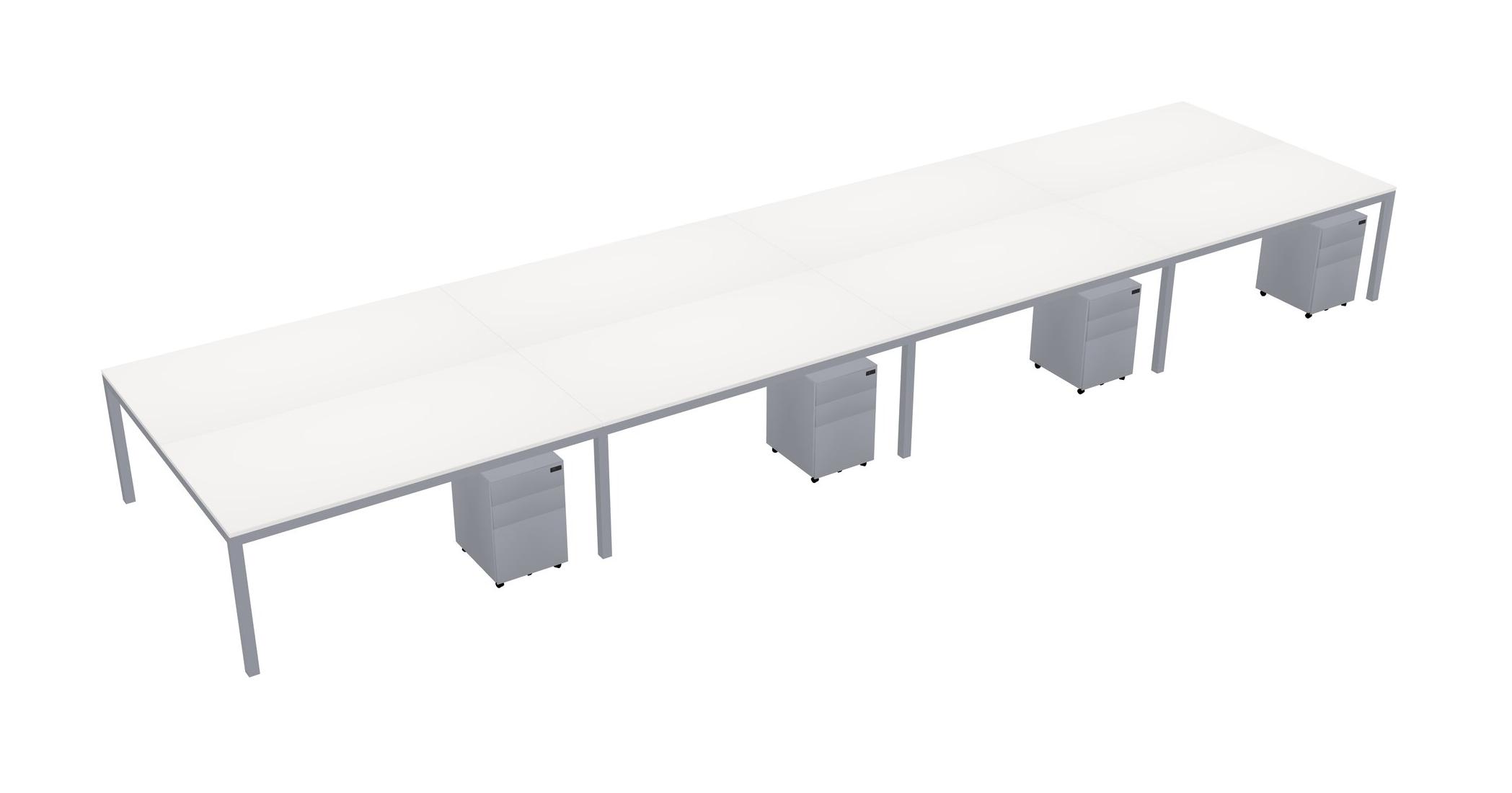White Shared Rectangular Office Desk With Metal Mobile Drawers For 8 Persons