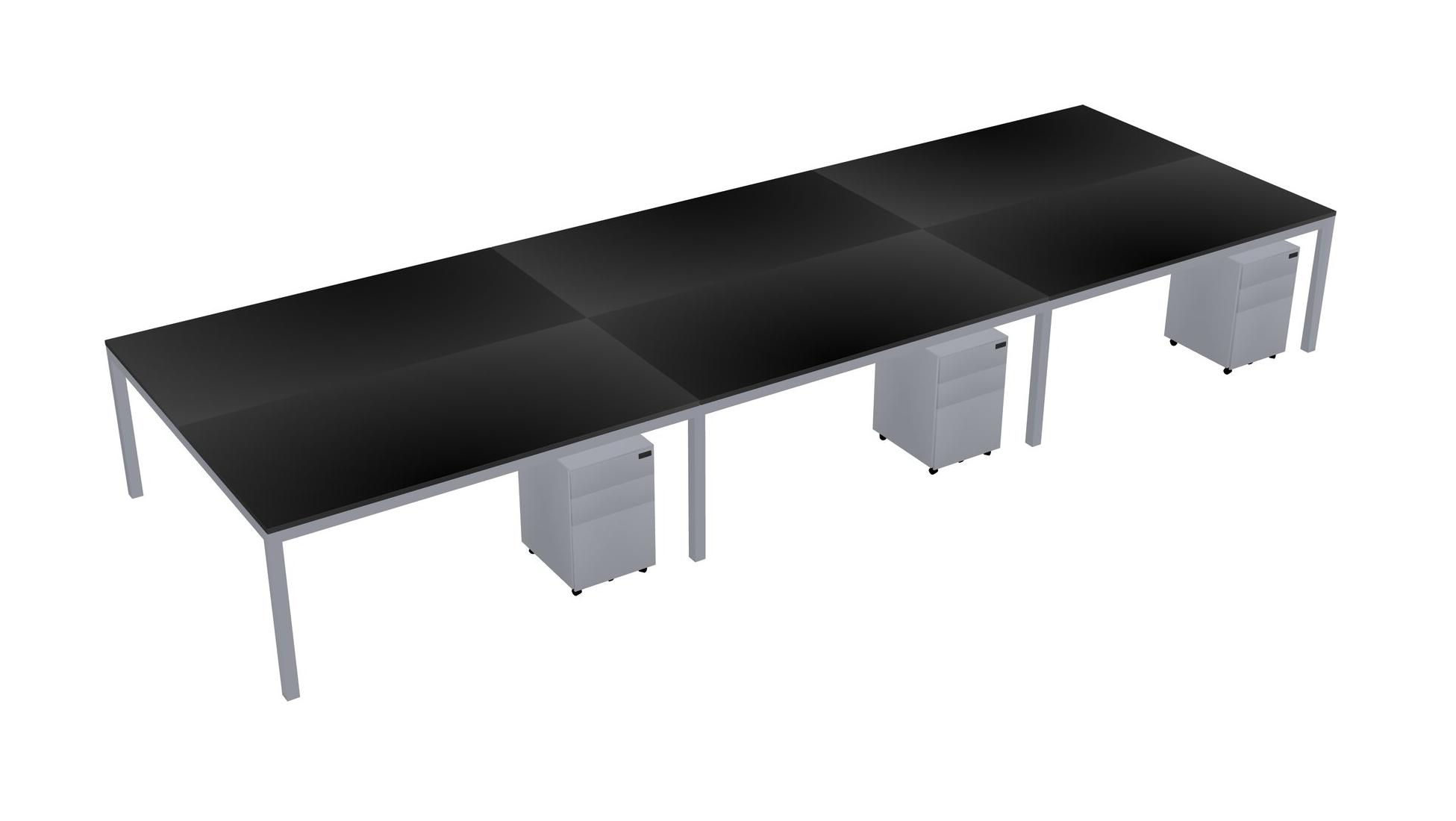 Black Shared Rectangular Office Desk With Metal Mobile Drawers For 6 Persons