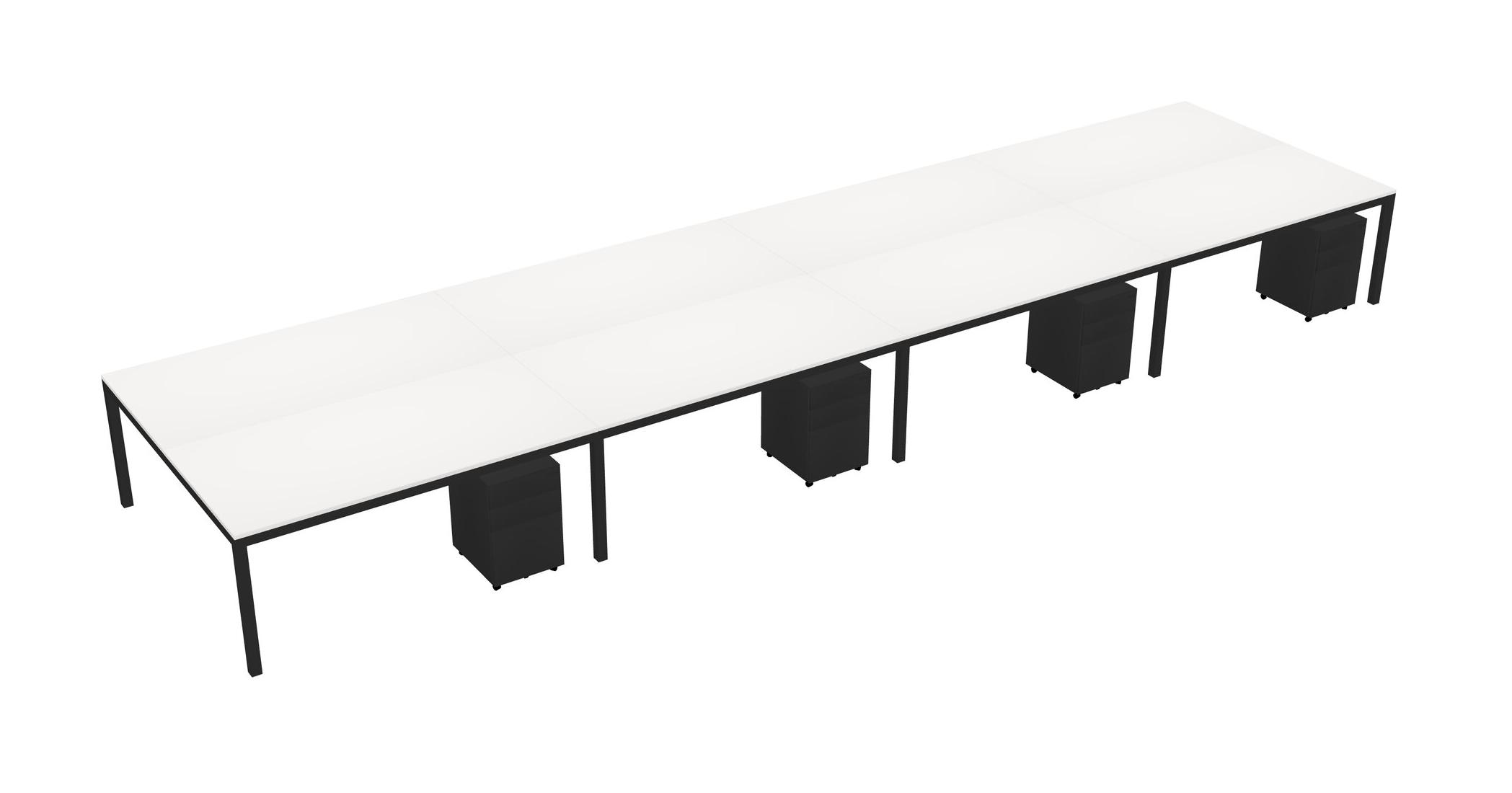 White Shared Rectangular Office Desk With Metal Mobile Drawers For 8 Persons