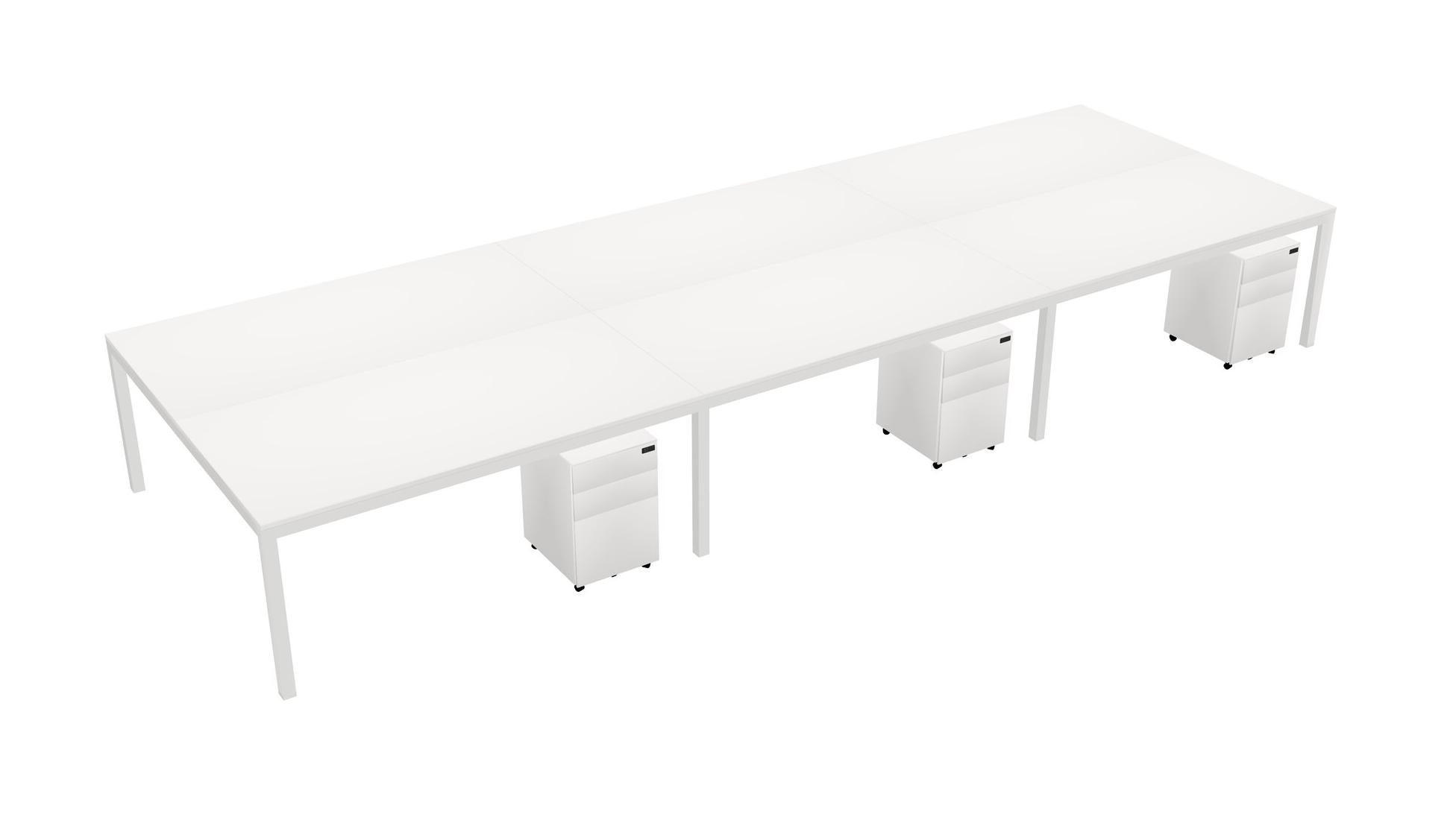 White Shared Rectangular Office Desk With Metal Mobile Drawers For 6 Persons