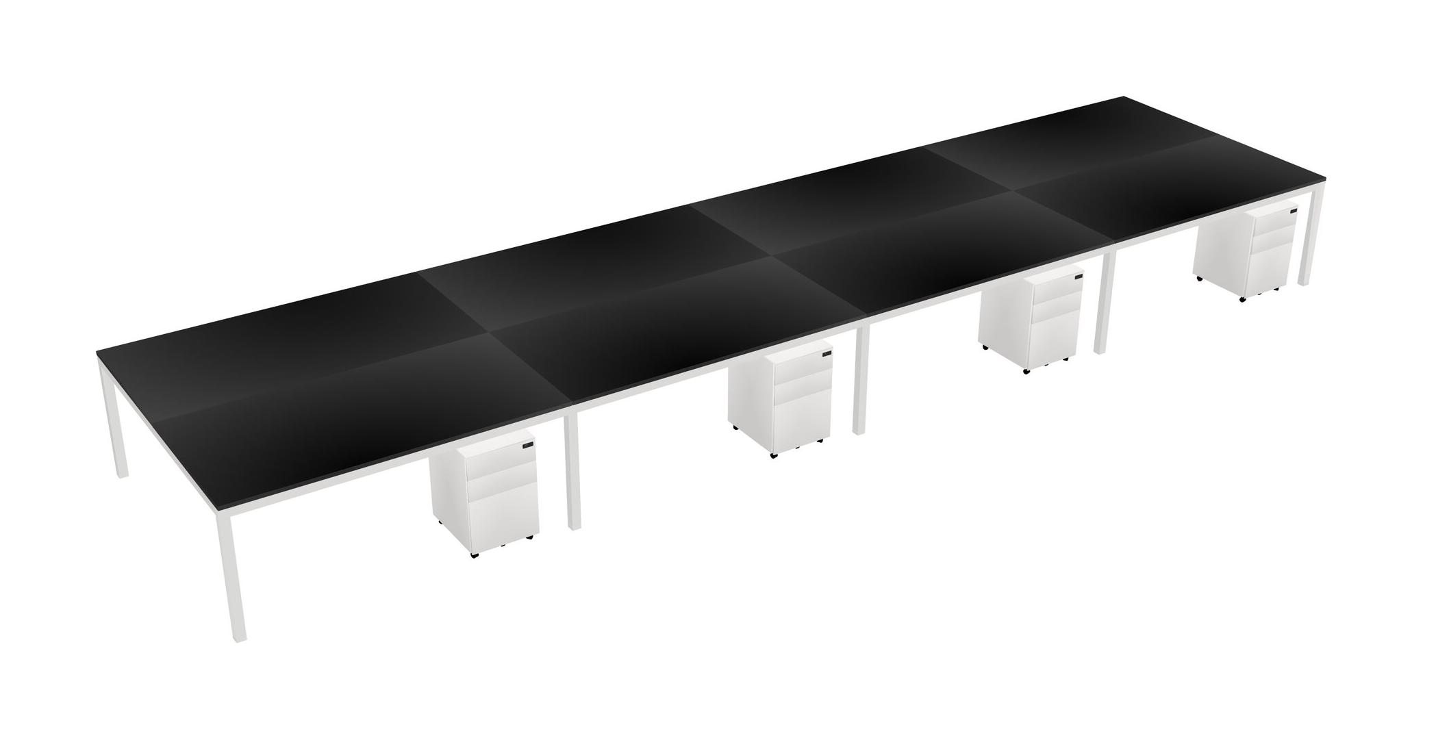 Black Shared Rectangular Office Desk With Metal Mobile Drawers For 8 Persons
