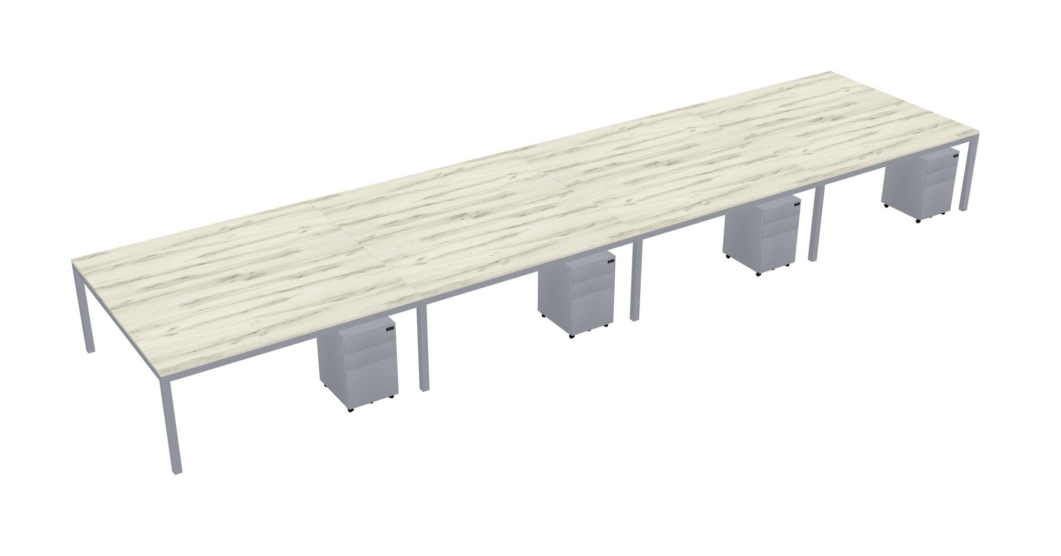 Heinne Holz Shared Rectangular Office Desk With Metal Mobile Drawers For 8 Persons