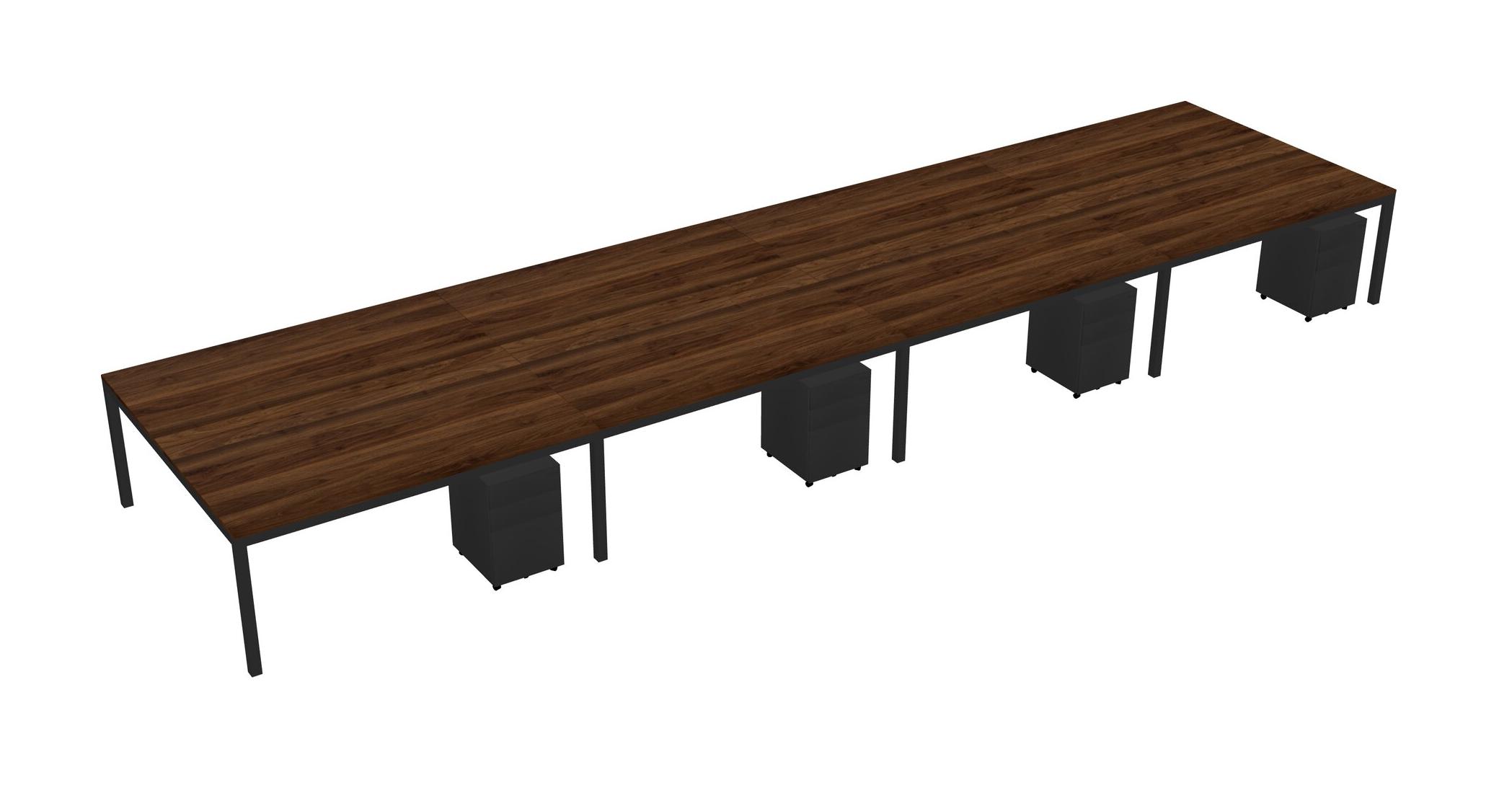 Columbia Walnut Shared Rectangular Office Desk With Metal Mobile Drawers For 8 Persons