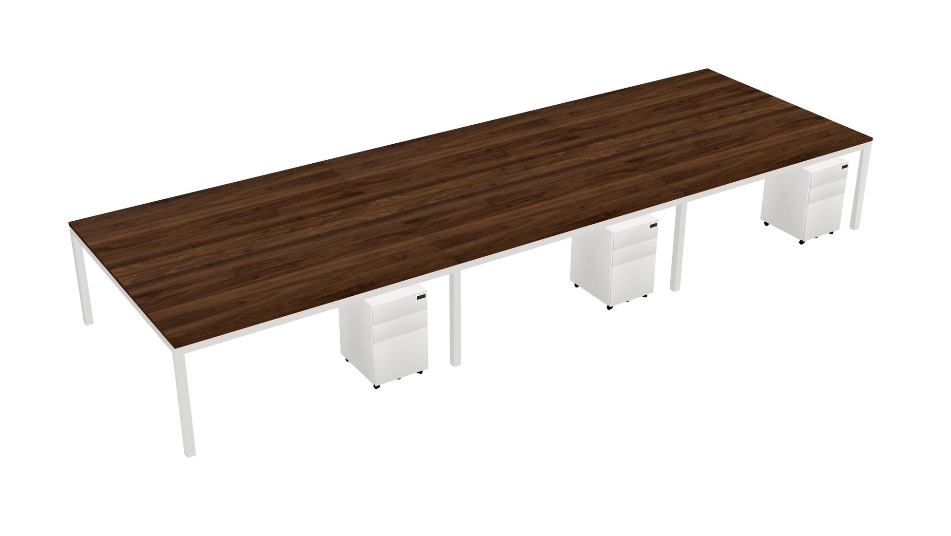 Columbia Walnut Shared Rectangular Office Desk With Metal Mobile Drawers For 6 Persons
