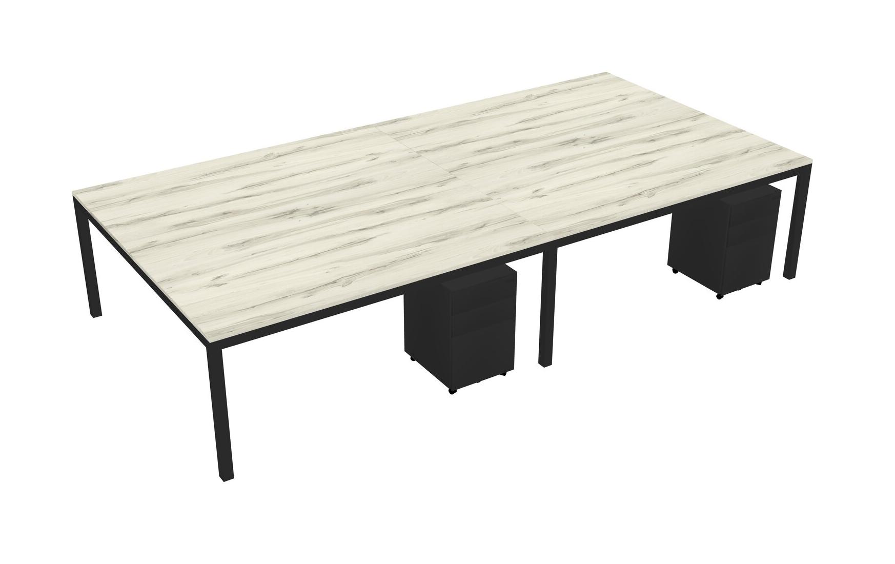 Heinne Holz Shared Rectangular Office Desk With Metal Mobile Drawers For 4 Persons