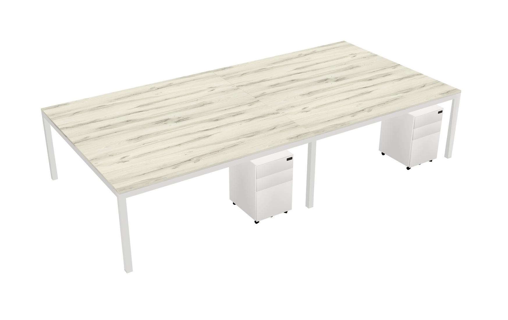 Heinne Holz Shared Rectangular Office Desk With Metal Mobile Drawers For 4 Persons