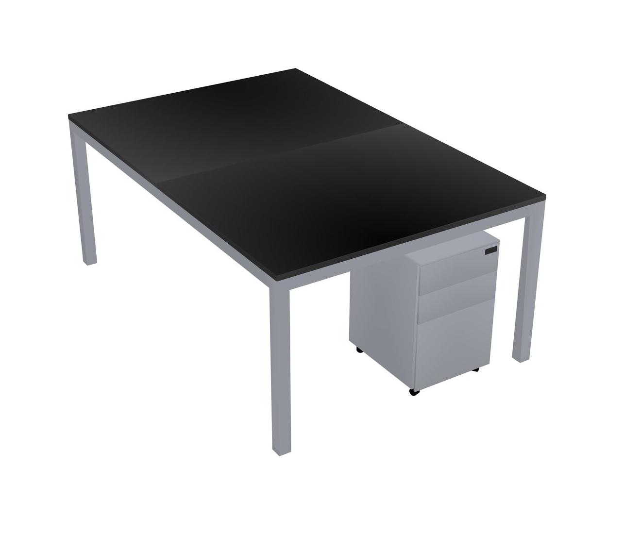 Black Shared Rectangular Office Desk With Metal Mobile Drawers For 2 Persons