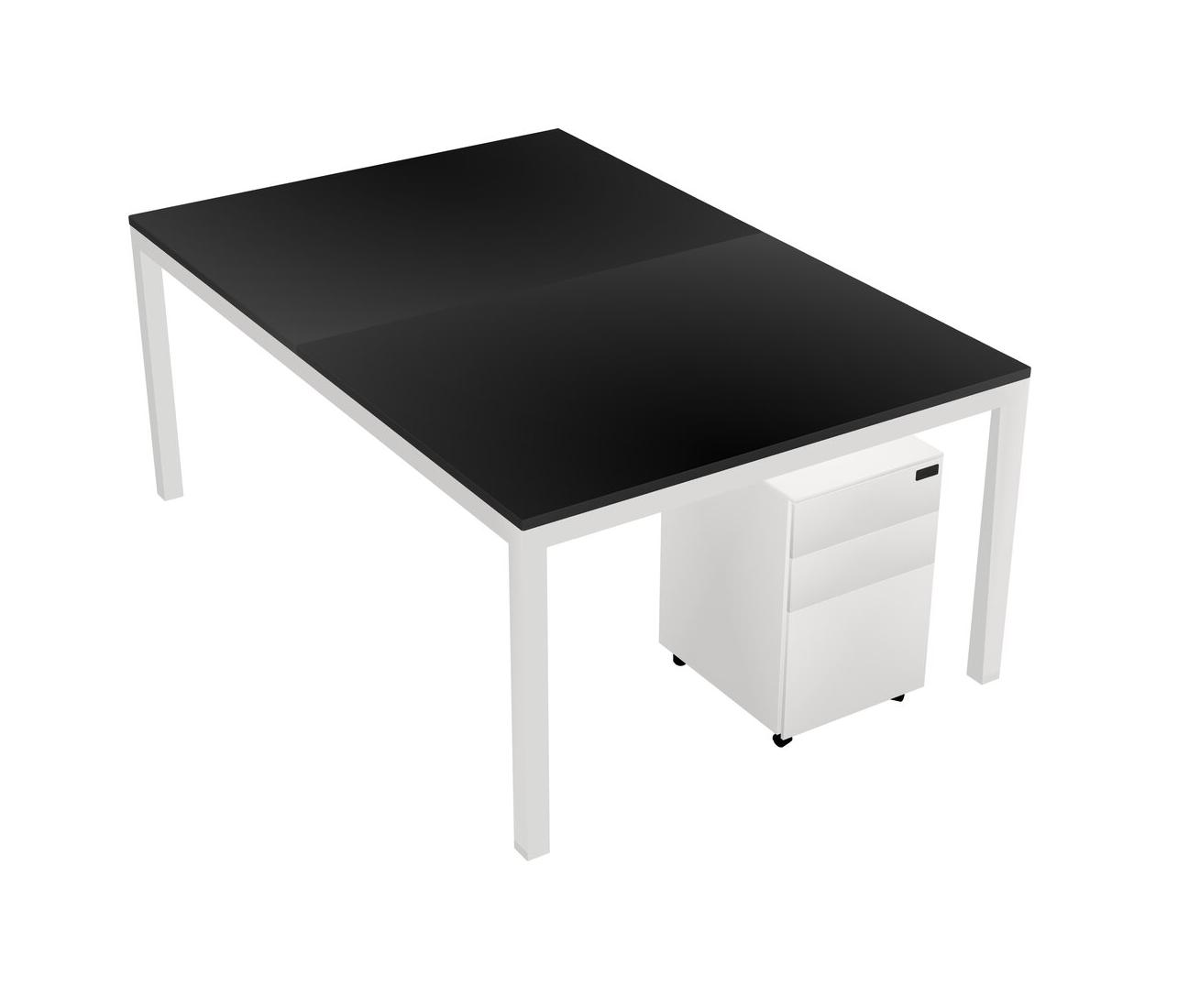 Black Shared Rectangular Office Desk With Metal Mobile Drawers For 2 Persons