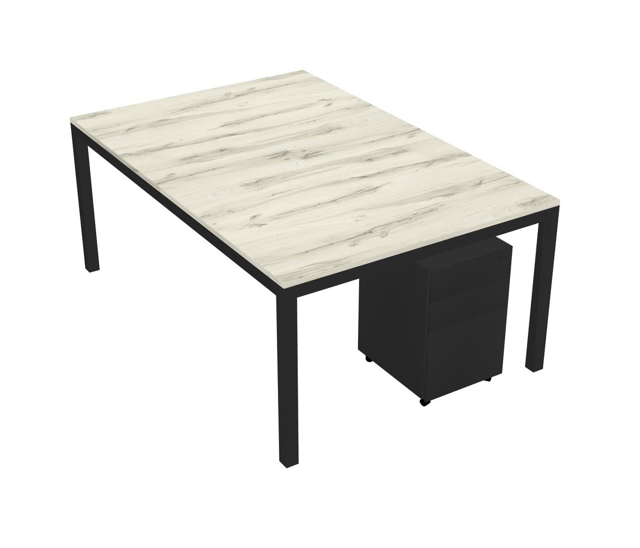 Heinne Holz Shared Rectangular Office Desk With Metal Mobile Drawers For 2 Persons