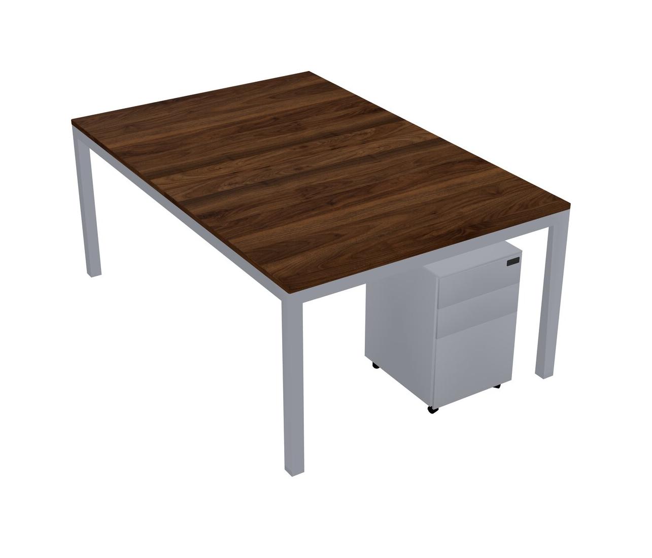 Columbia Walnut Shared Rectangular Office Desk With Metal Mobile Drawers For 2 Persons