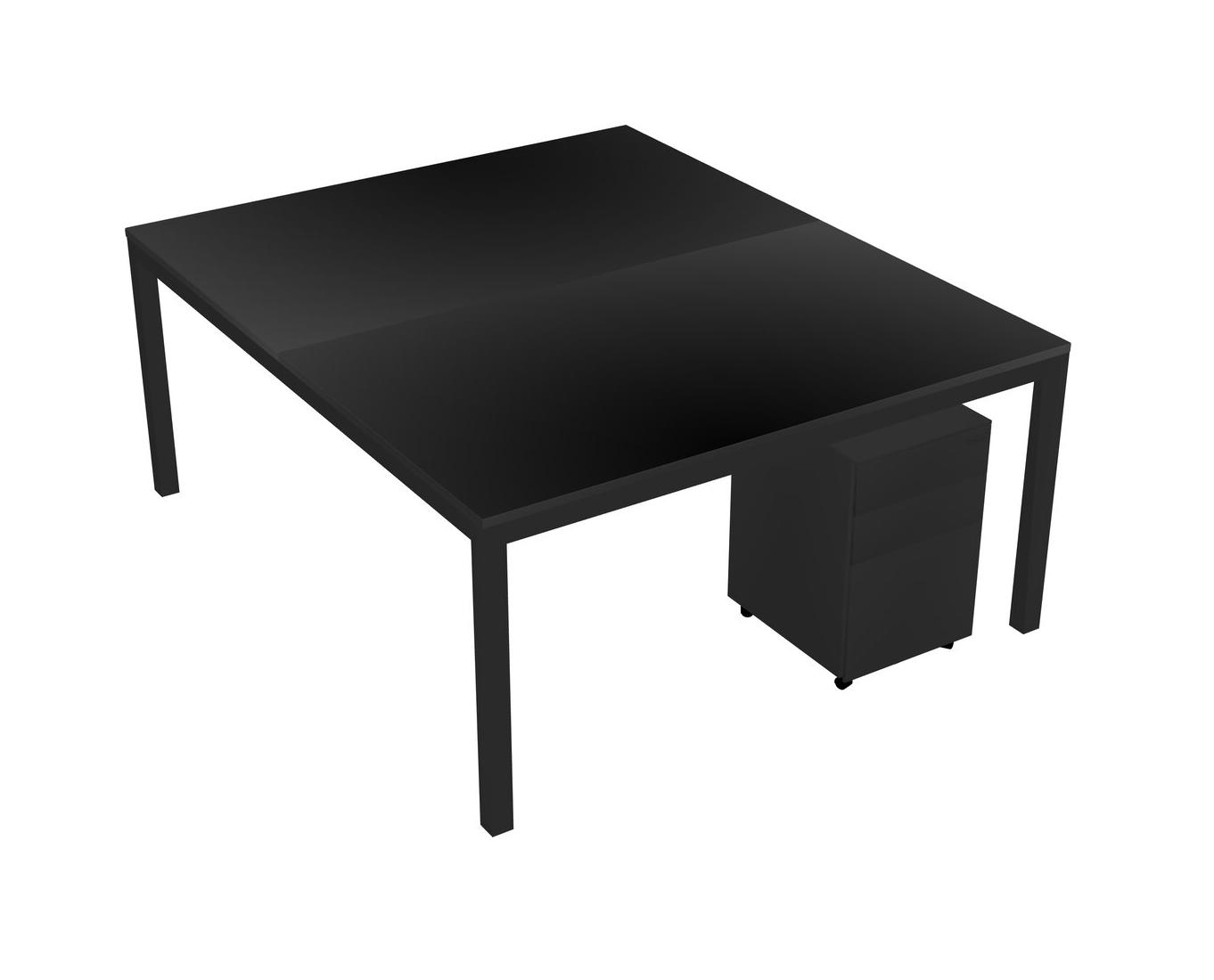Black Shared Rectangular Office Desk With Metal Mobile Drawers For 2 Persons
